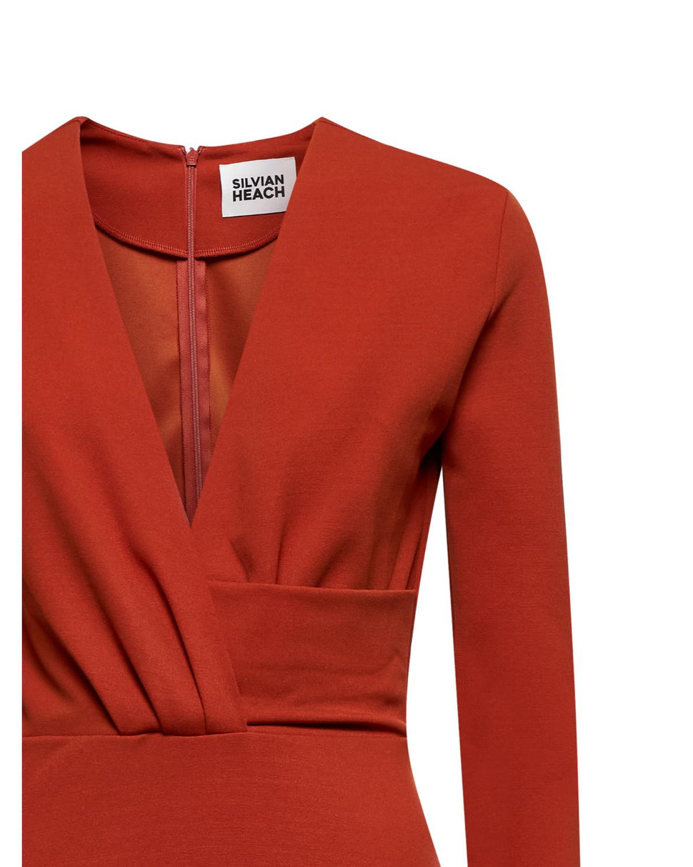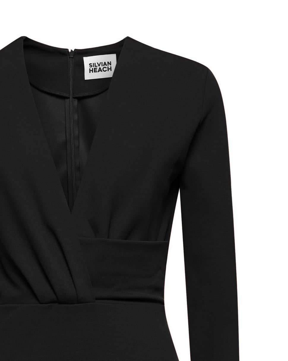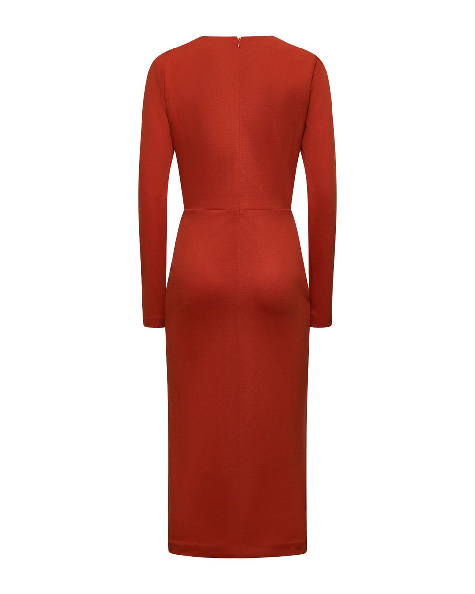 Linee pulite e design femminile per questo abito midi con dettaglio drappeggiato sul davanti. Un capo elegante ma comodo, perfetto per la quotidianità con un tocco chic.