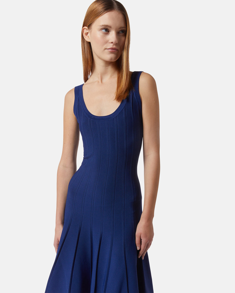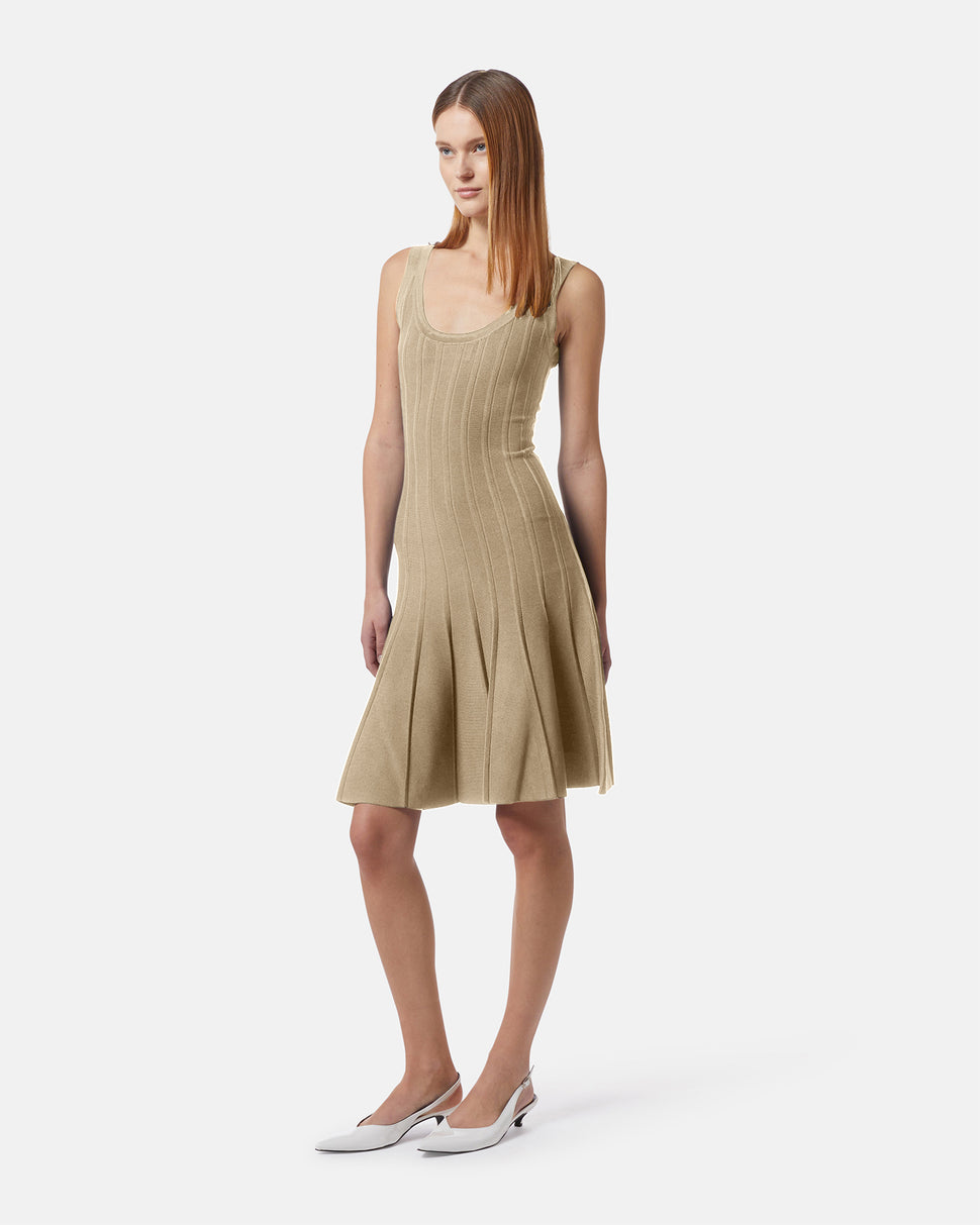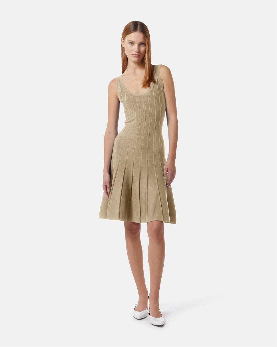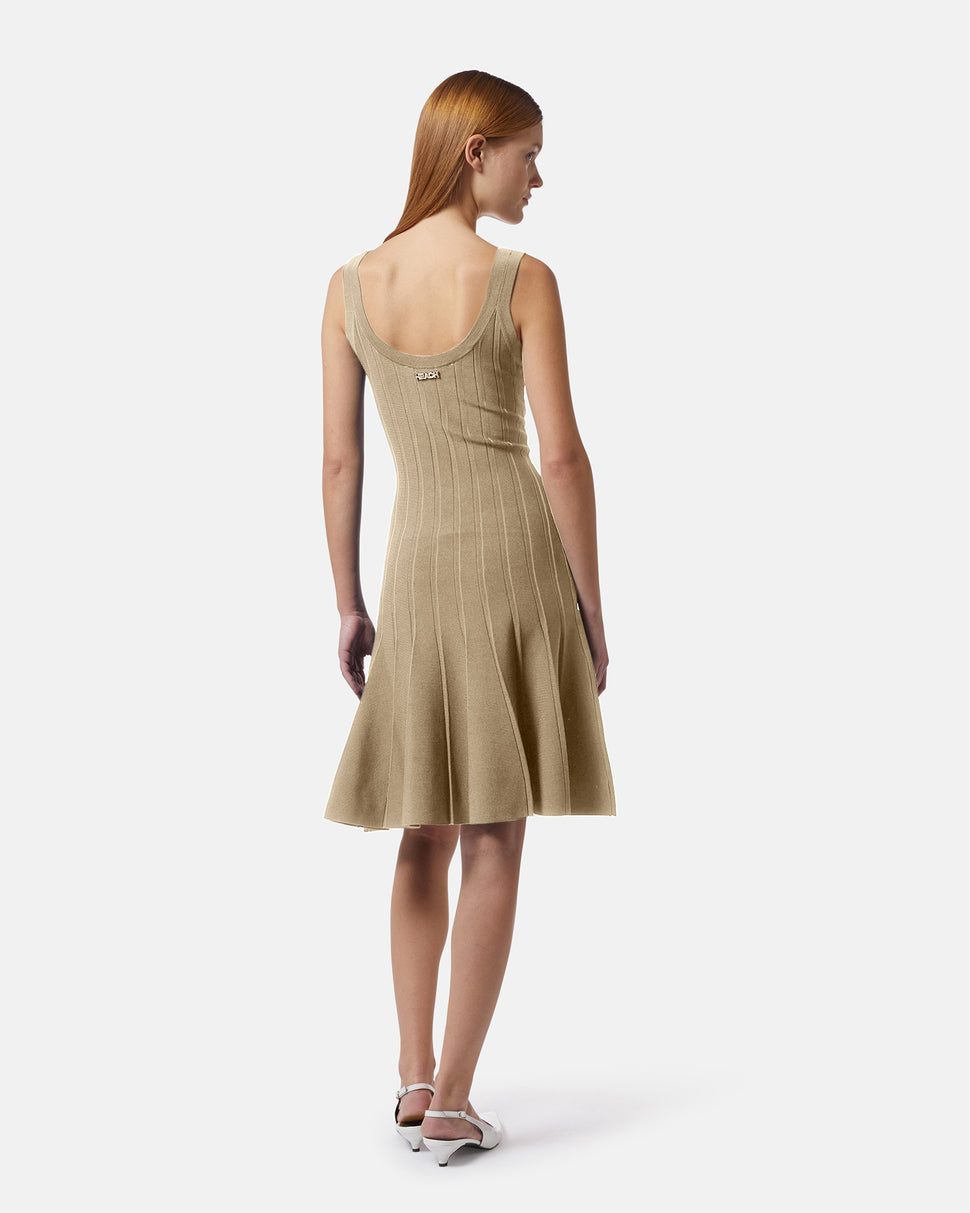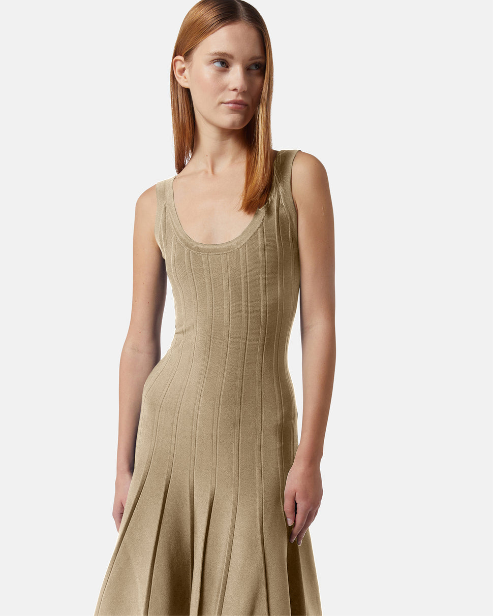 Un capo versatile e femminile che unisce comfort ed eleganza. Questo abito in maglia presenta un design svasato che dona movimento e leggerezza, perfetto per un look raffinato e disinvolto. Il tessuto a maglia elasticizzata assicura una vestibilità comoda, mentre lo scollo rotondo valorizza il décolleté con sobria eleganza. Ideale per occasioni casual-chic o serate estive.