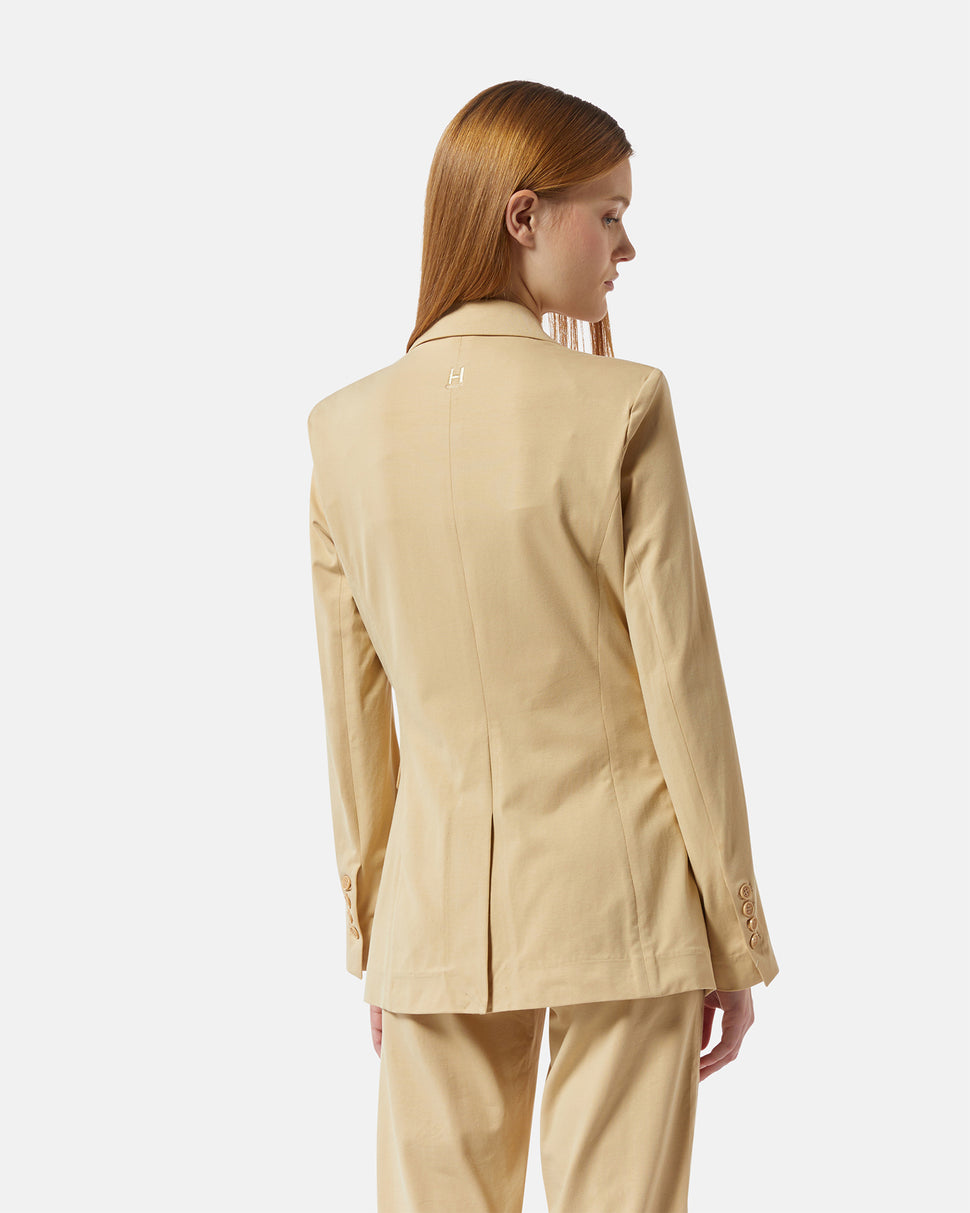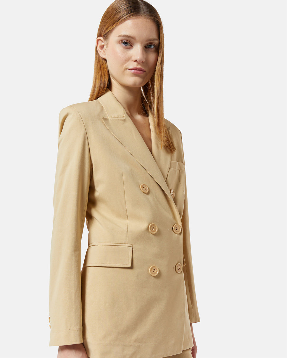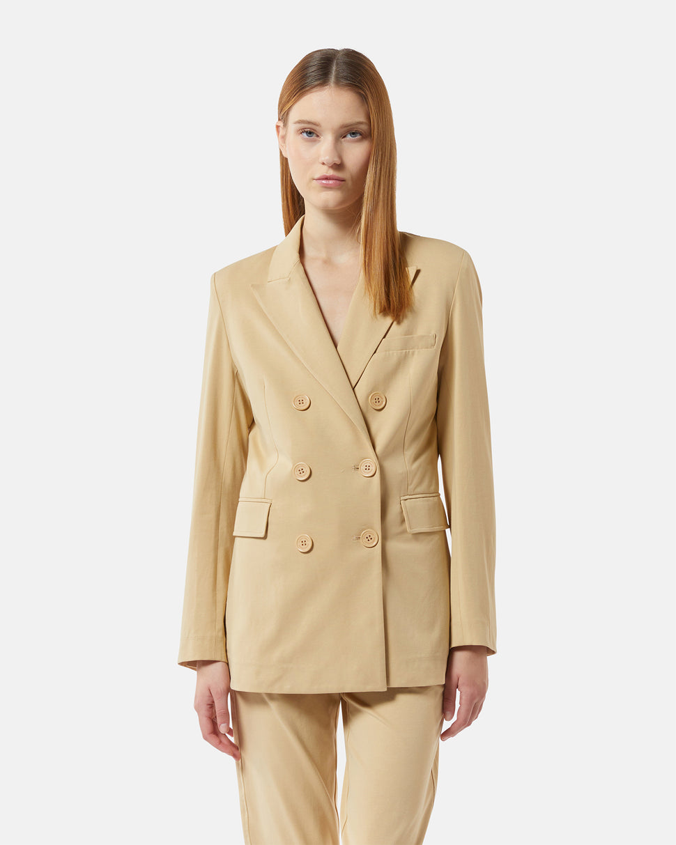 Un capo elegante e senza tempo, ideale per aggiungere un tocco di classe a qualsiasi look. Il design doppiopetto con bottoni tono su tono e i revers classici rendono questo blazer un must-have versatile.