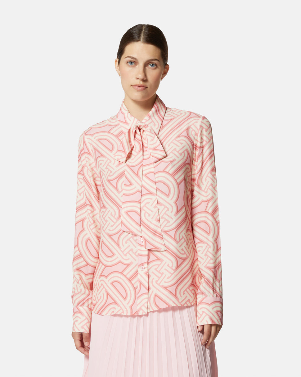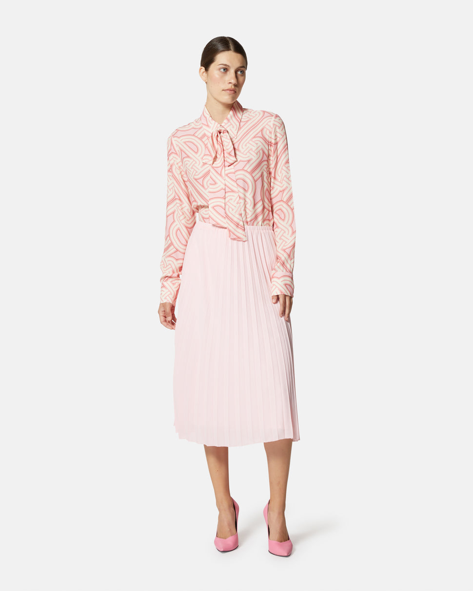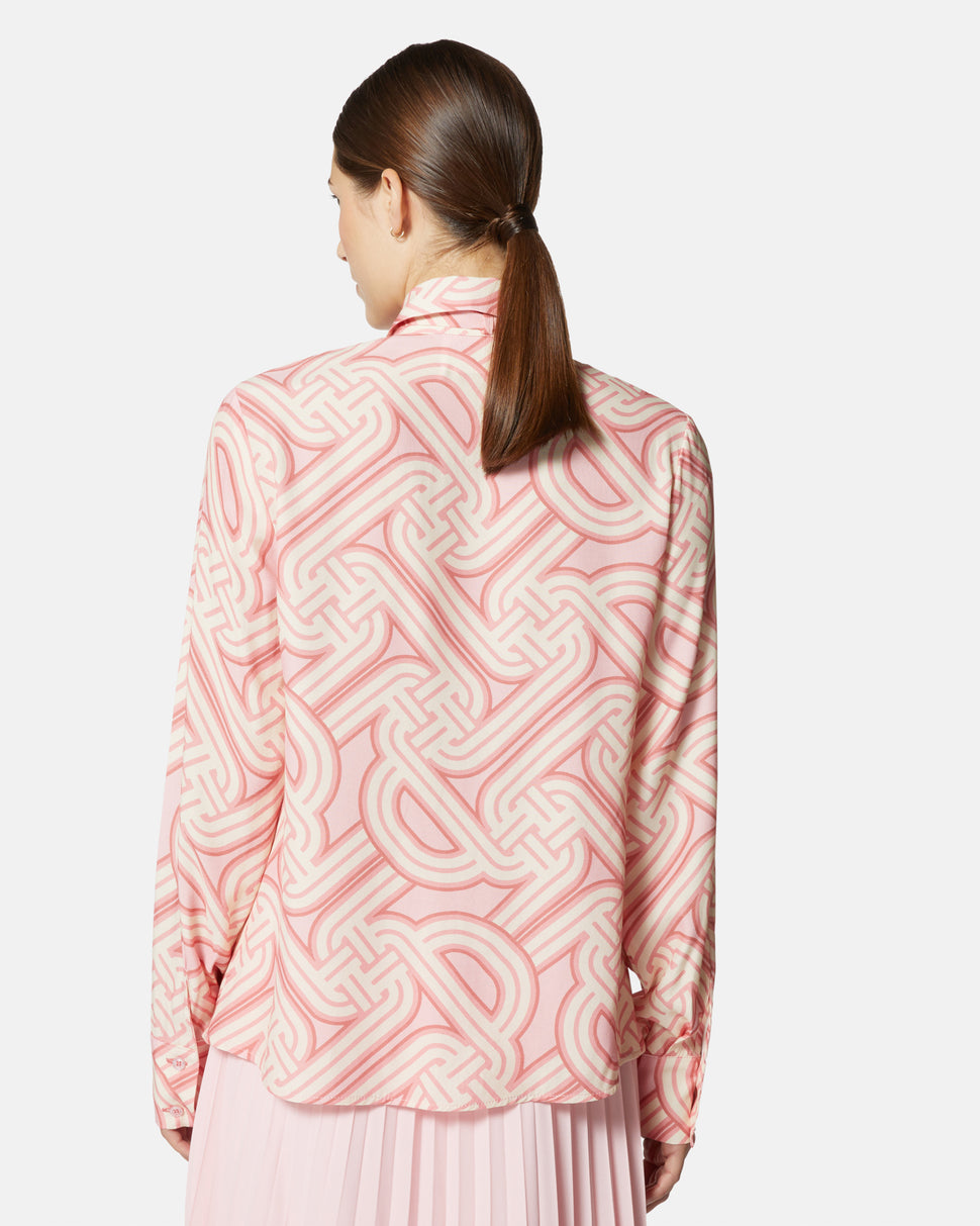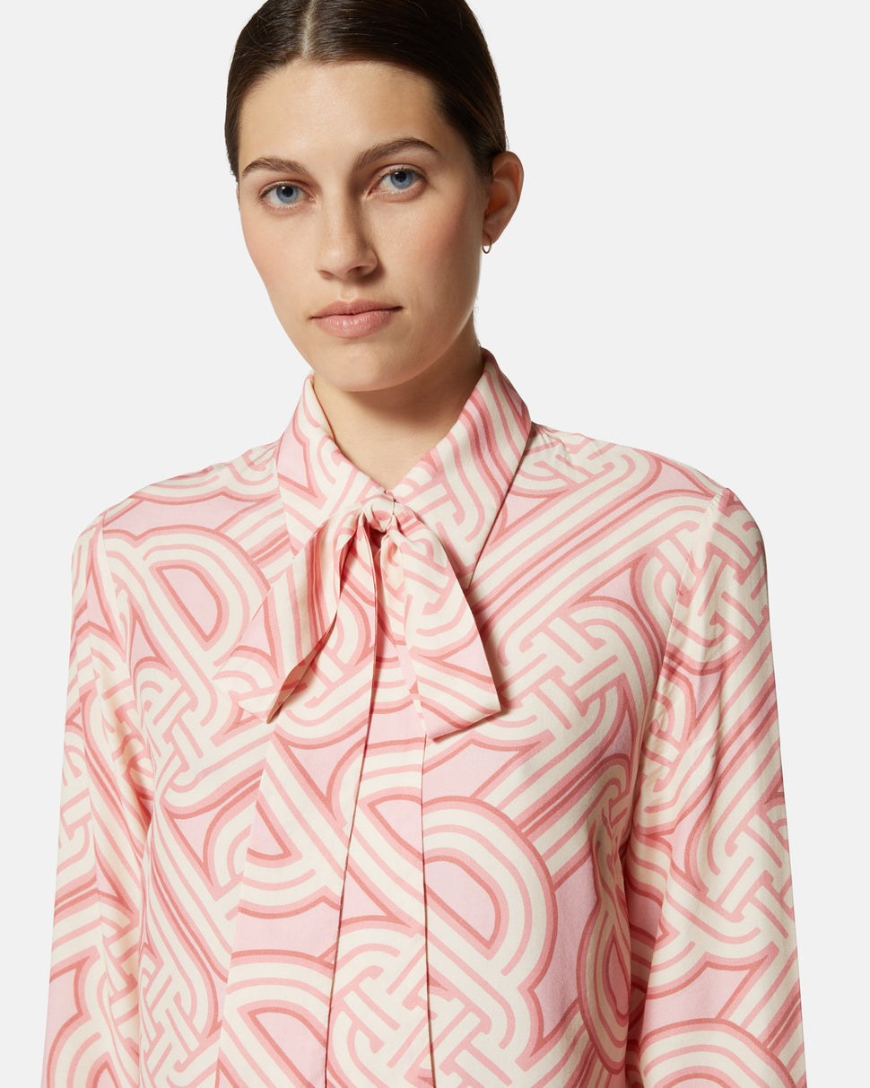 Una blusa elegante e versatile, perfetta per un look chic e sofisticato. Il dettaglio della chiusura con fiocco e la stampa geometrica la rendono un capo unico e stiloso.