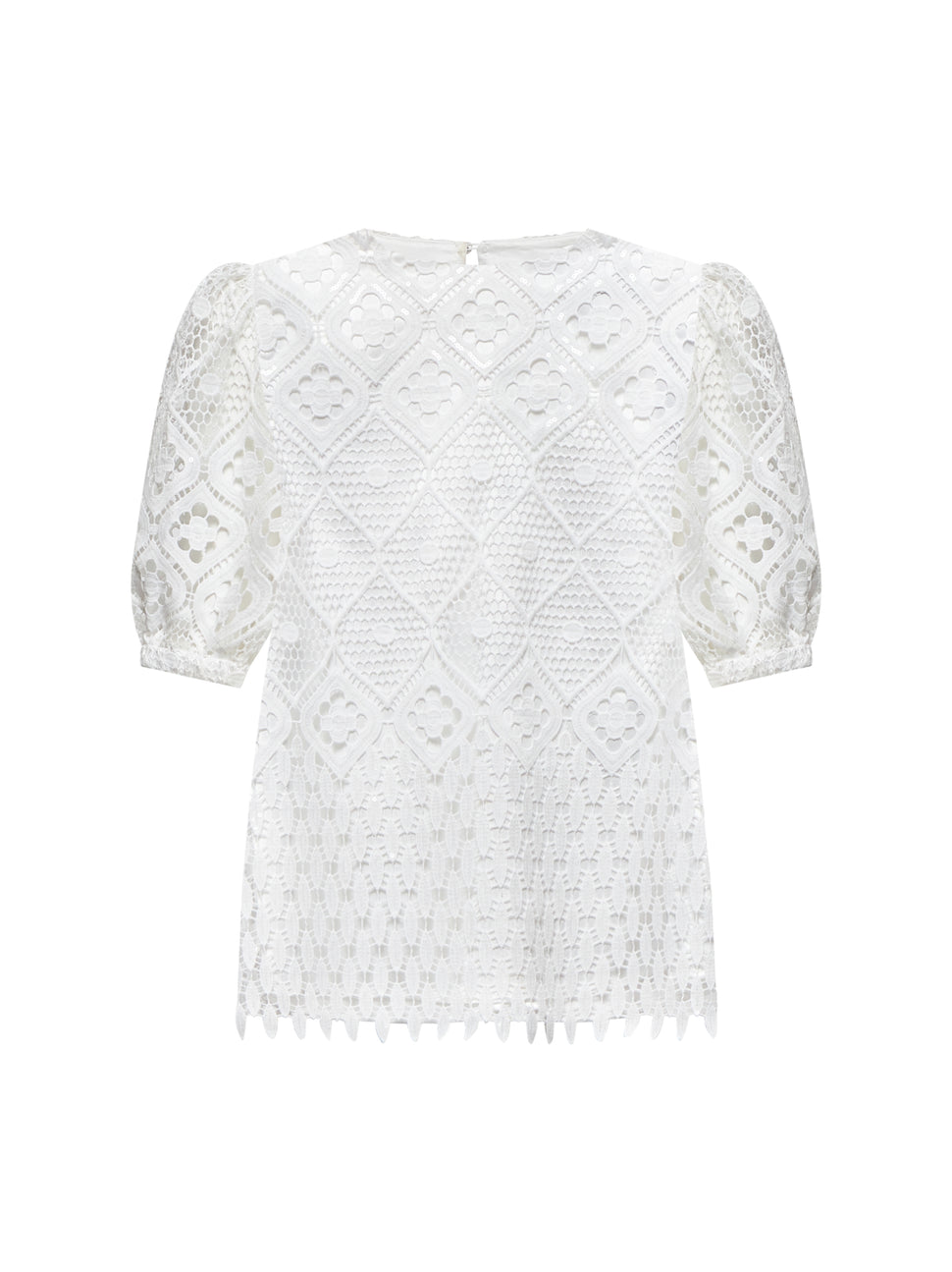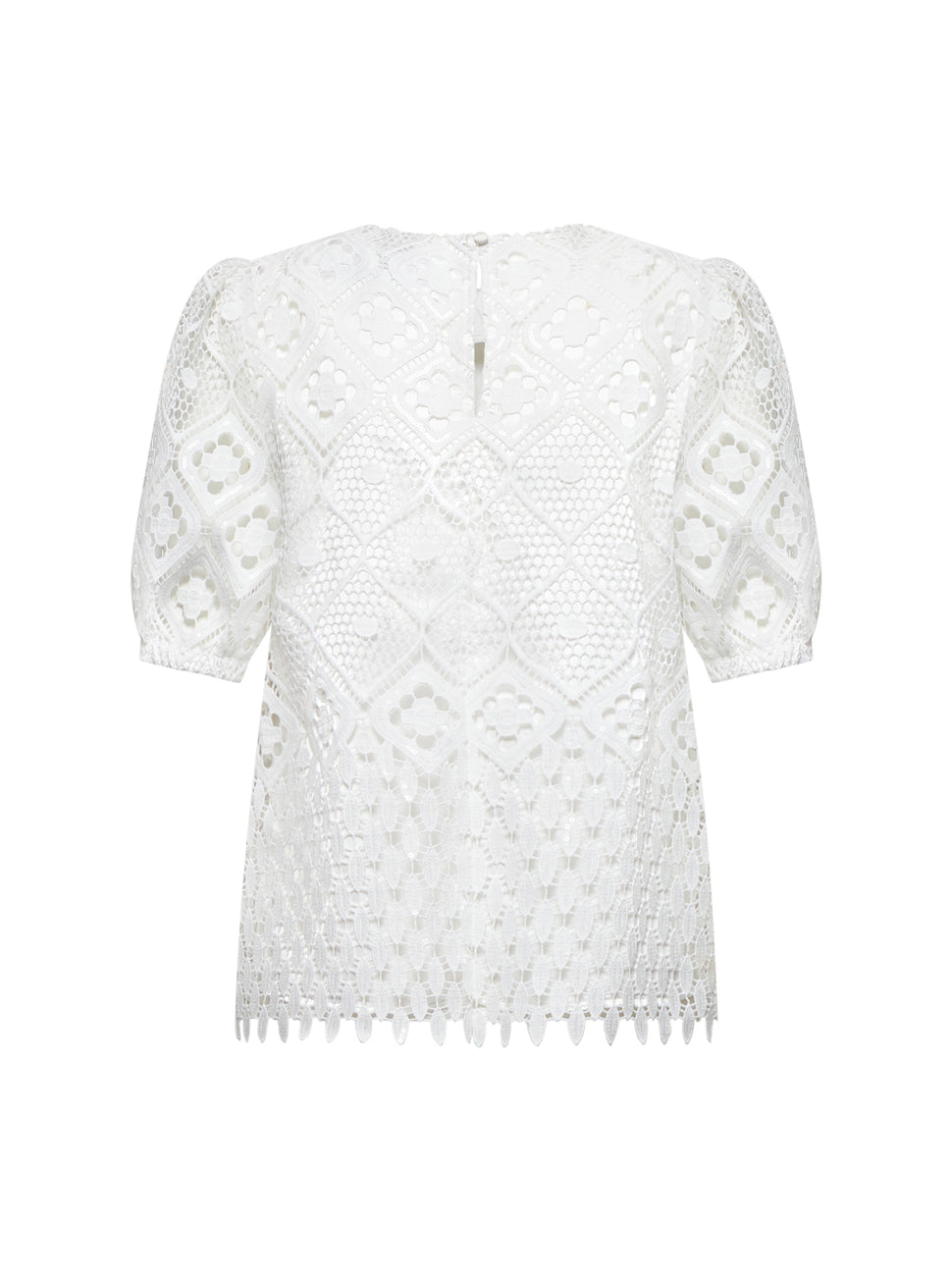 Blusa in pizzo traforato con maniche a sbuffo