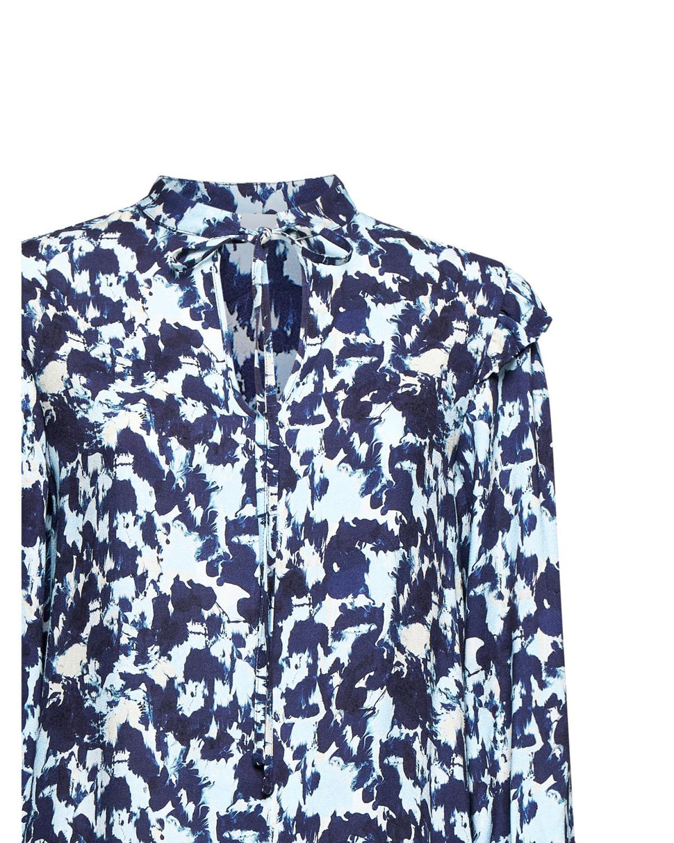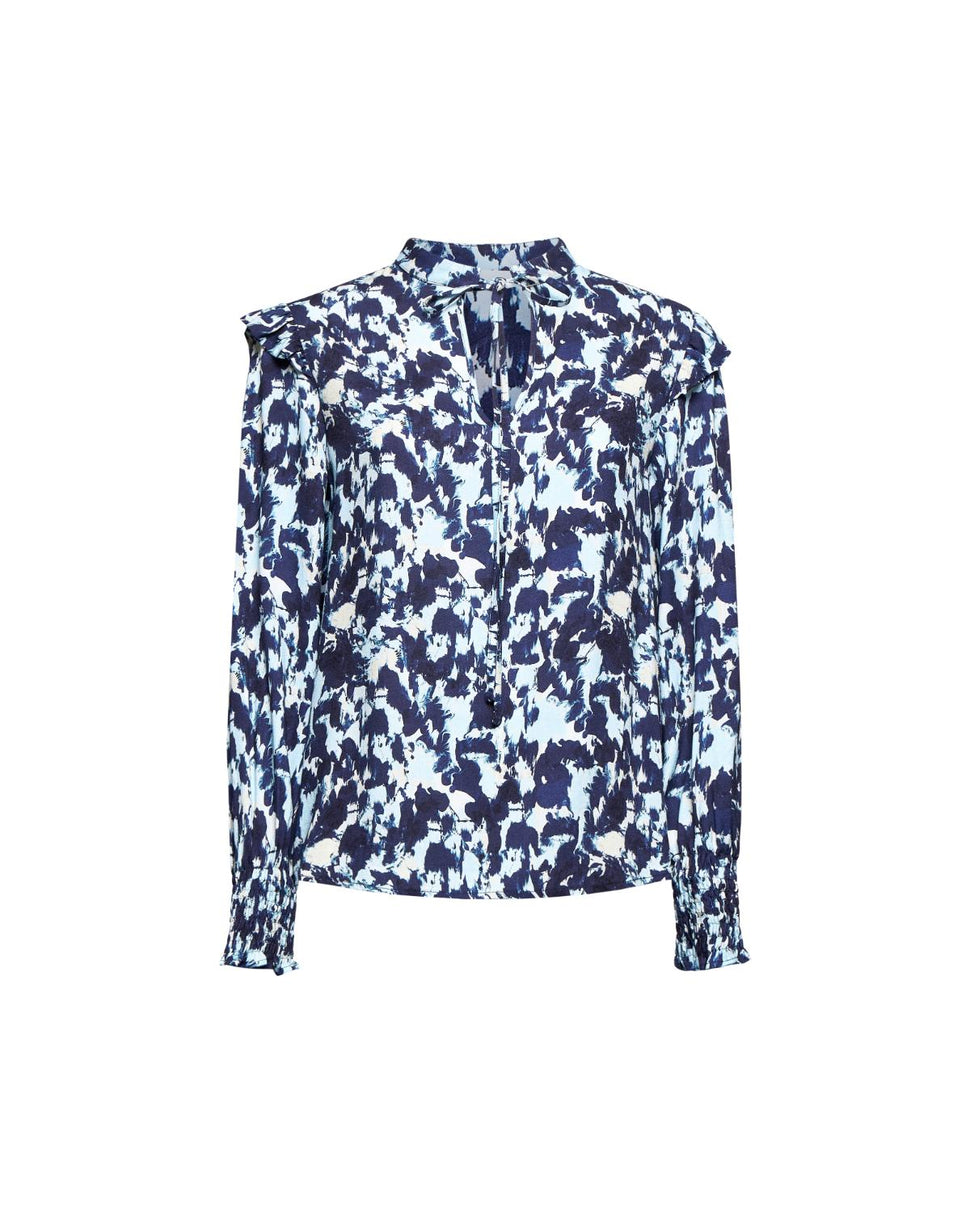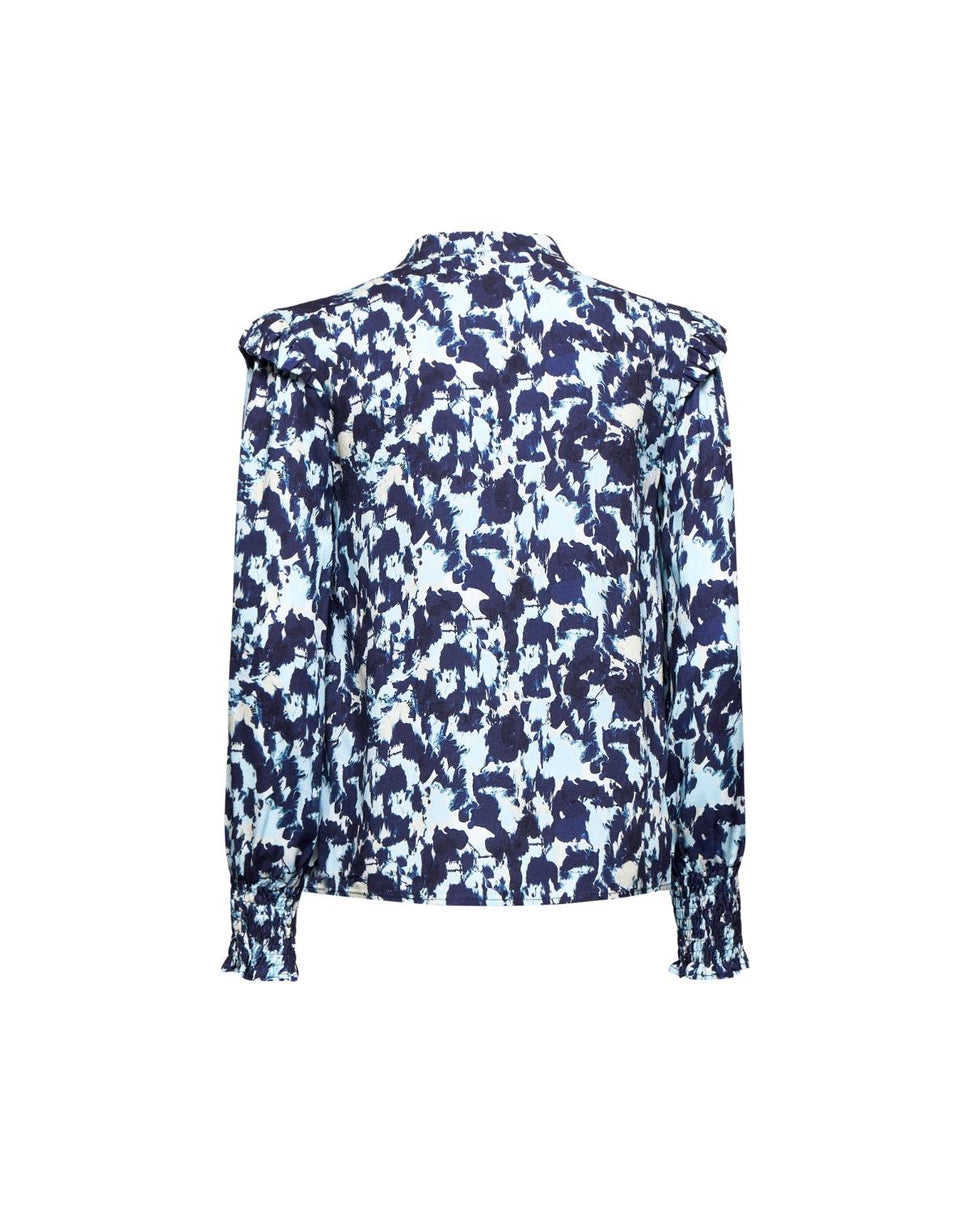 Blusa dal design elegante e femminile, caratterizzata da una vivace fantasia e dettagli curati che donano un tocco distintivo. Perfetta per look sia formali che casual, si adatta a diverse occasioni con stile.