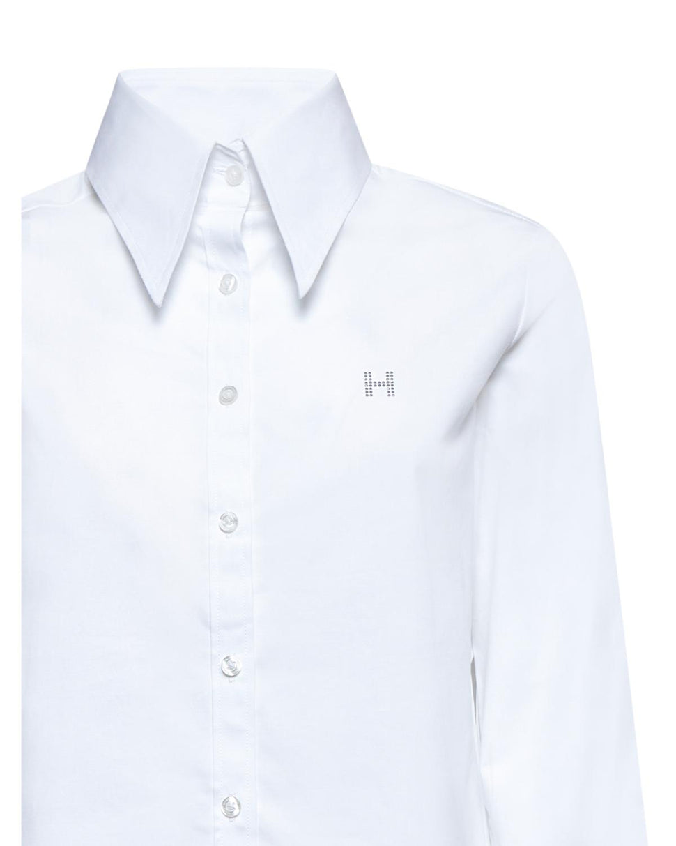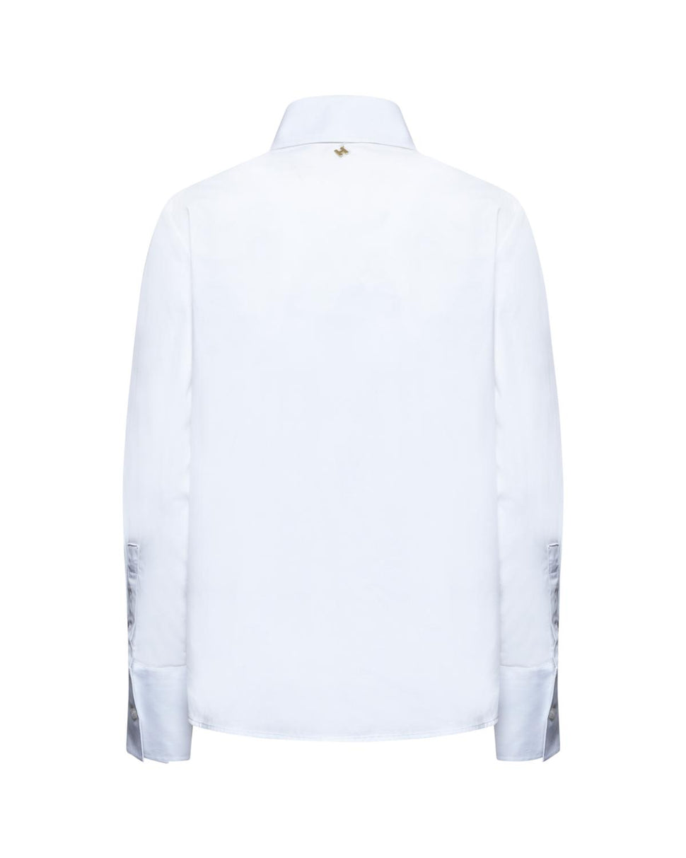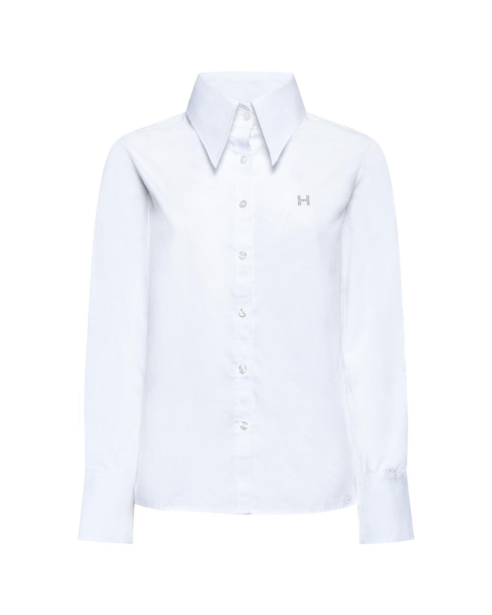 Una camicia bianca dal taglio pulito e colletto a punta di dimensioni extra. Un dettaglio inaspettato per elevare anche i look più basic con un tocco moderno.
