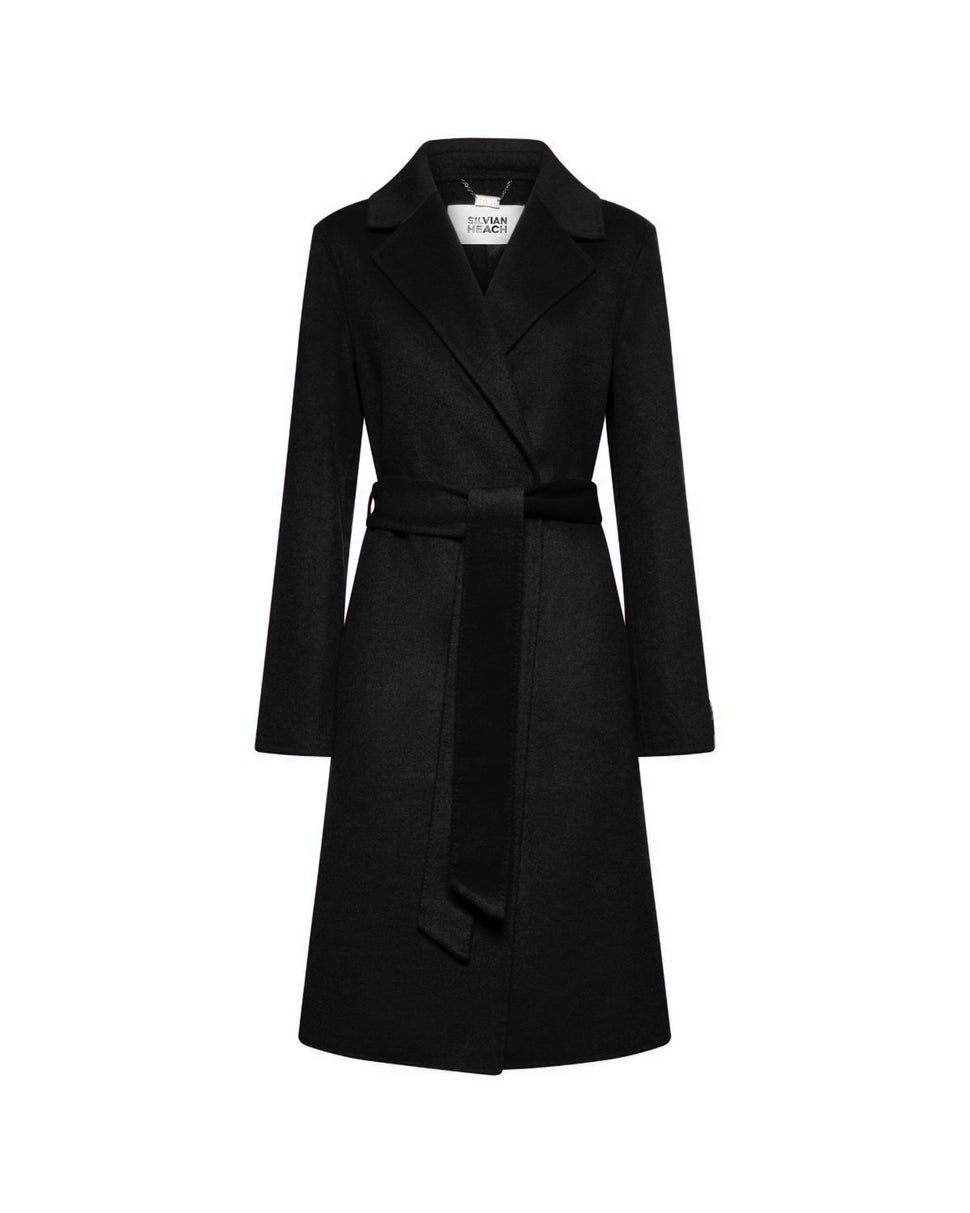 Linee pulite, fit definito. Questo cappotto avvolgente si distingue per il collo a lancia e la cintura coordinata che sottolinea il punto vita con eleganza.