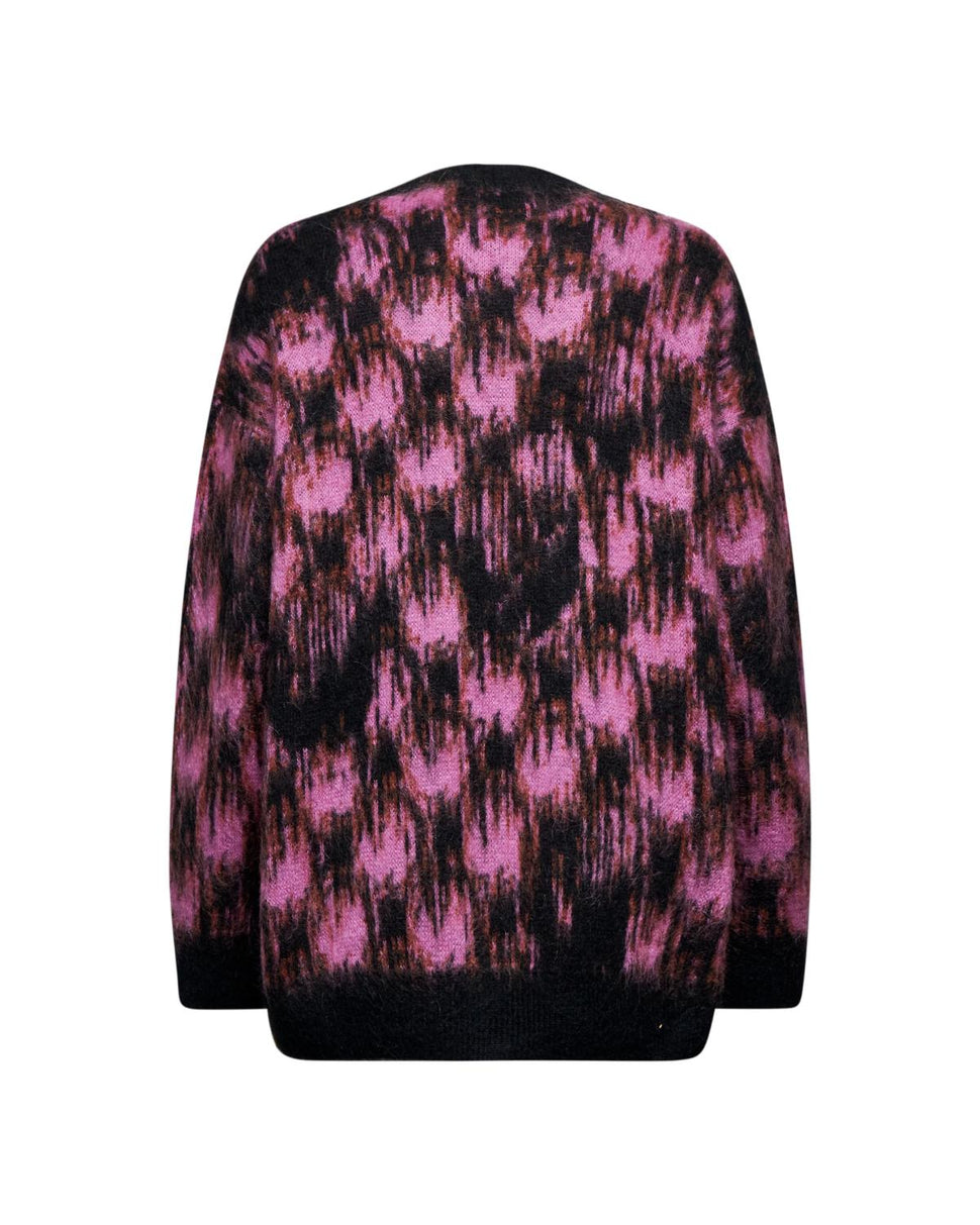 Cardigan con scollo a V e motivo sfumato a contrasto. Il design leggero lo rende adatto a diverse stagioni.