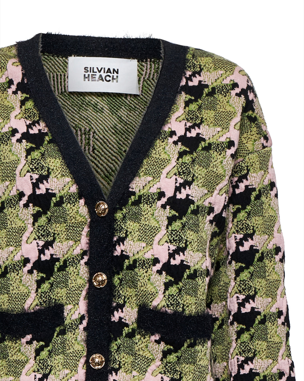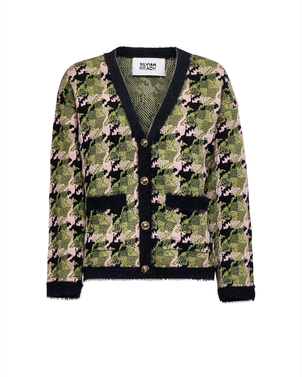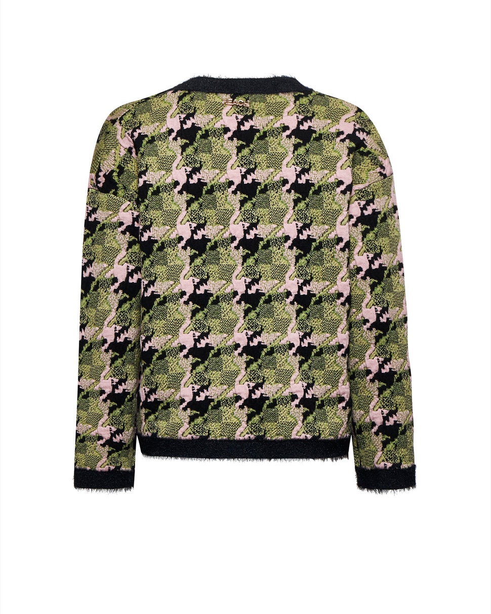 Cardigan con lavorazione grafica e bottoni decorativi