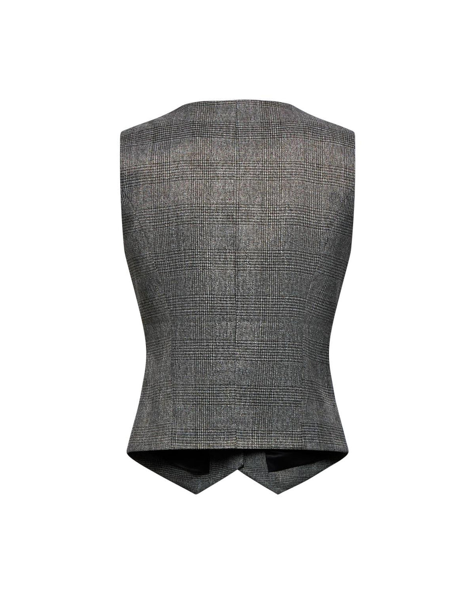 Una proposta raffinata per chi ama i dettagli. Questo gilet presenta un motivo micro-check che aggiunge texture e un tocco heritage al guardaroba contemporaneo.