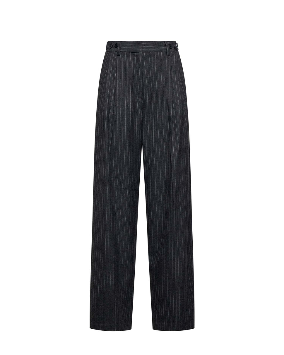 Pantaloni dalla gamba ampia con motivo a righe verticali. Un taglio rilassato e contemporaneo, perfetto per outfit disinvolti ma distintivi.