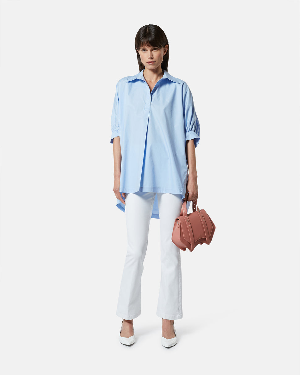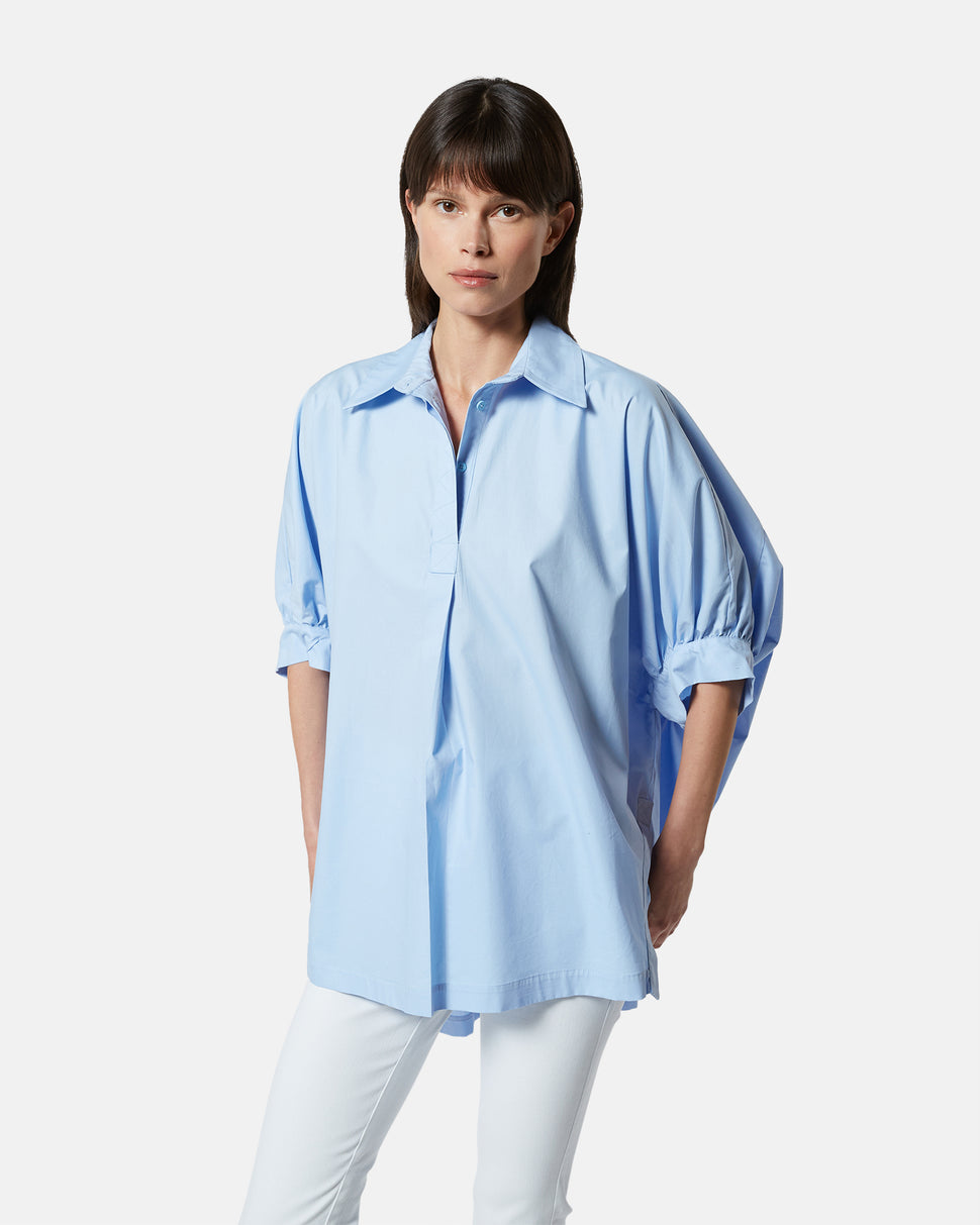 Una camicia dallo stile unico e fresco, caratterizzata da un taglio ampio e maniche a palloncino che conferiscono un look moderno e sofisticato. Perfetta per ogni occasione, è ideale per un outfit casual ma ricercato.