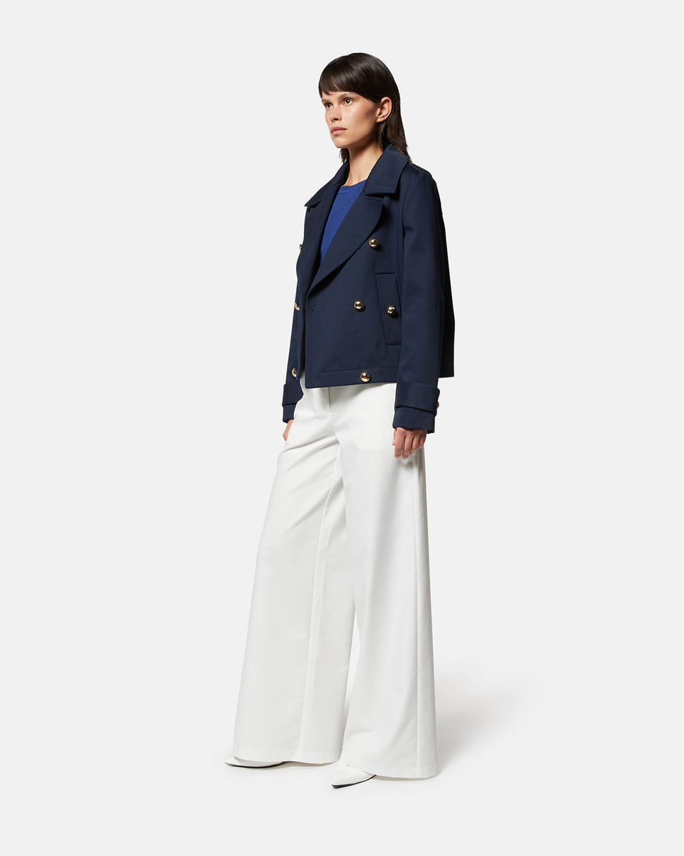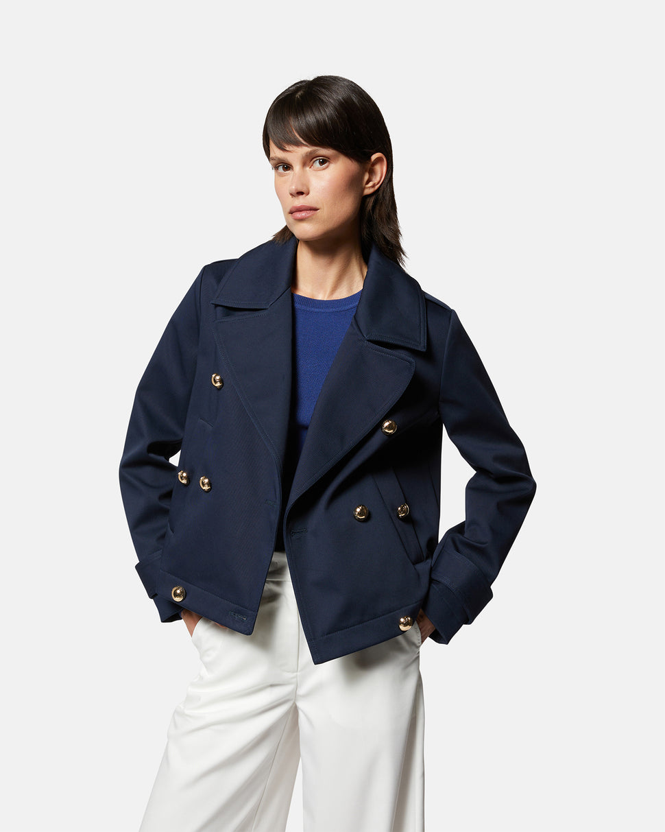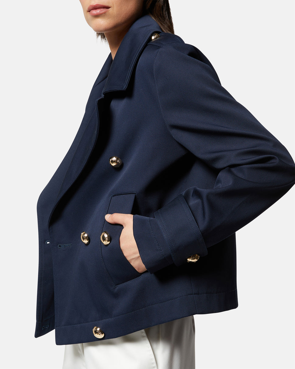 Un classico senza tempo che unisce eleganza e versatilità. La silhouette strutturata e il design doppiopetto con bottoni dorati donano un tocco raffinato, perfetto per completare look sofisticati e casual-chic.