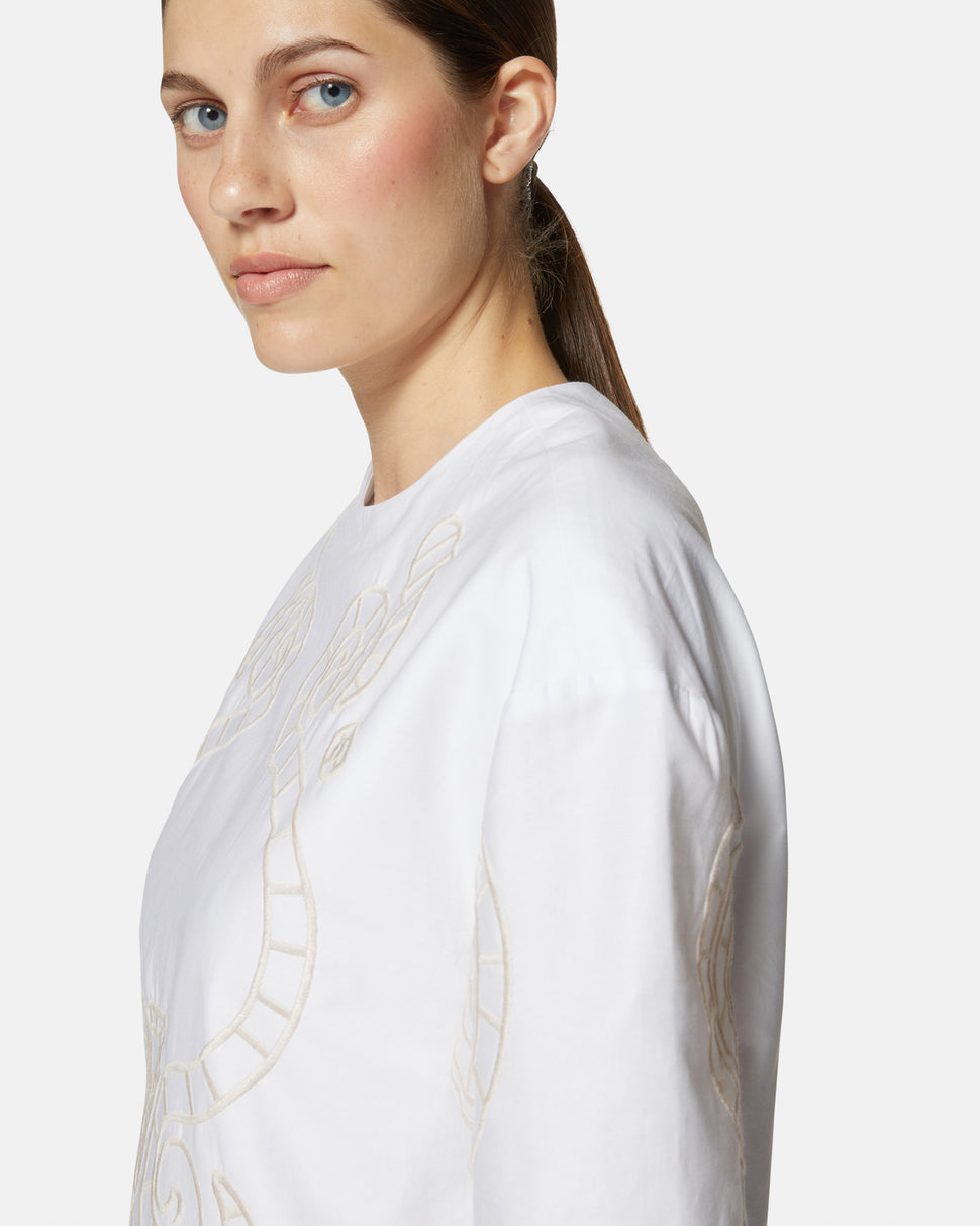 - Scollo rotondo e maniche corte ampie: un look fresco e moderno con un tocco di romanticismo.
