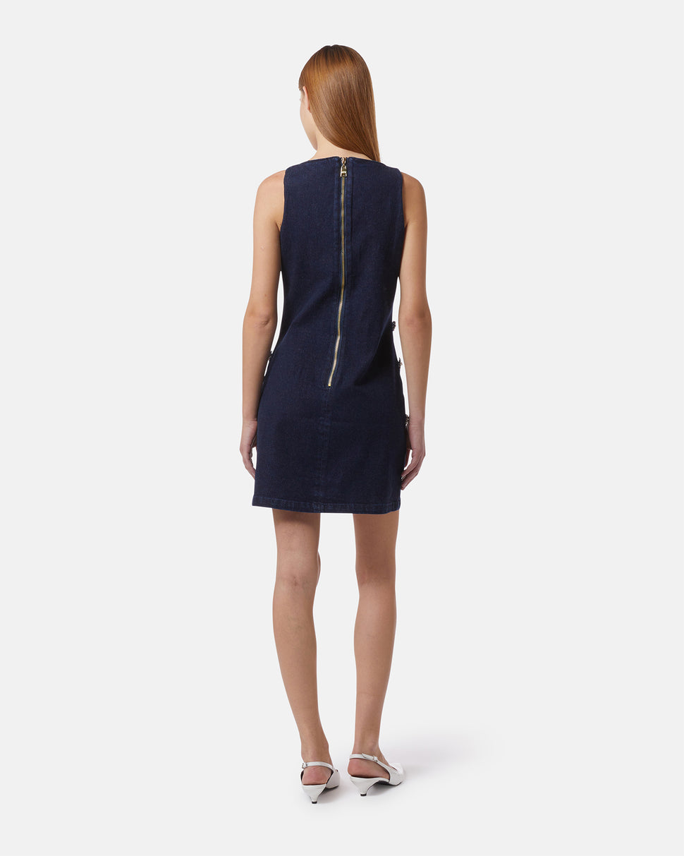 - Tessuto in denim elasticizzato: confortevole e modellante, perfetto per esaltare la figura.