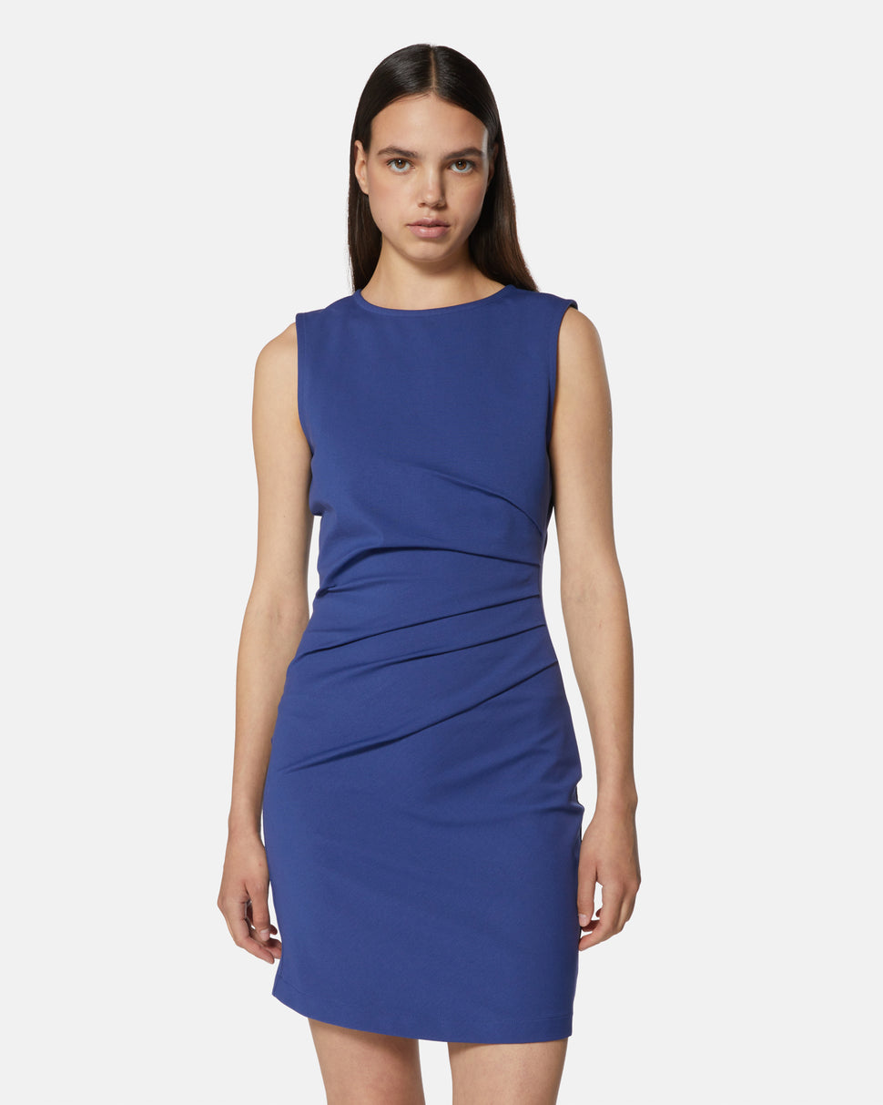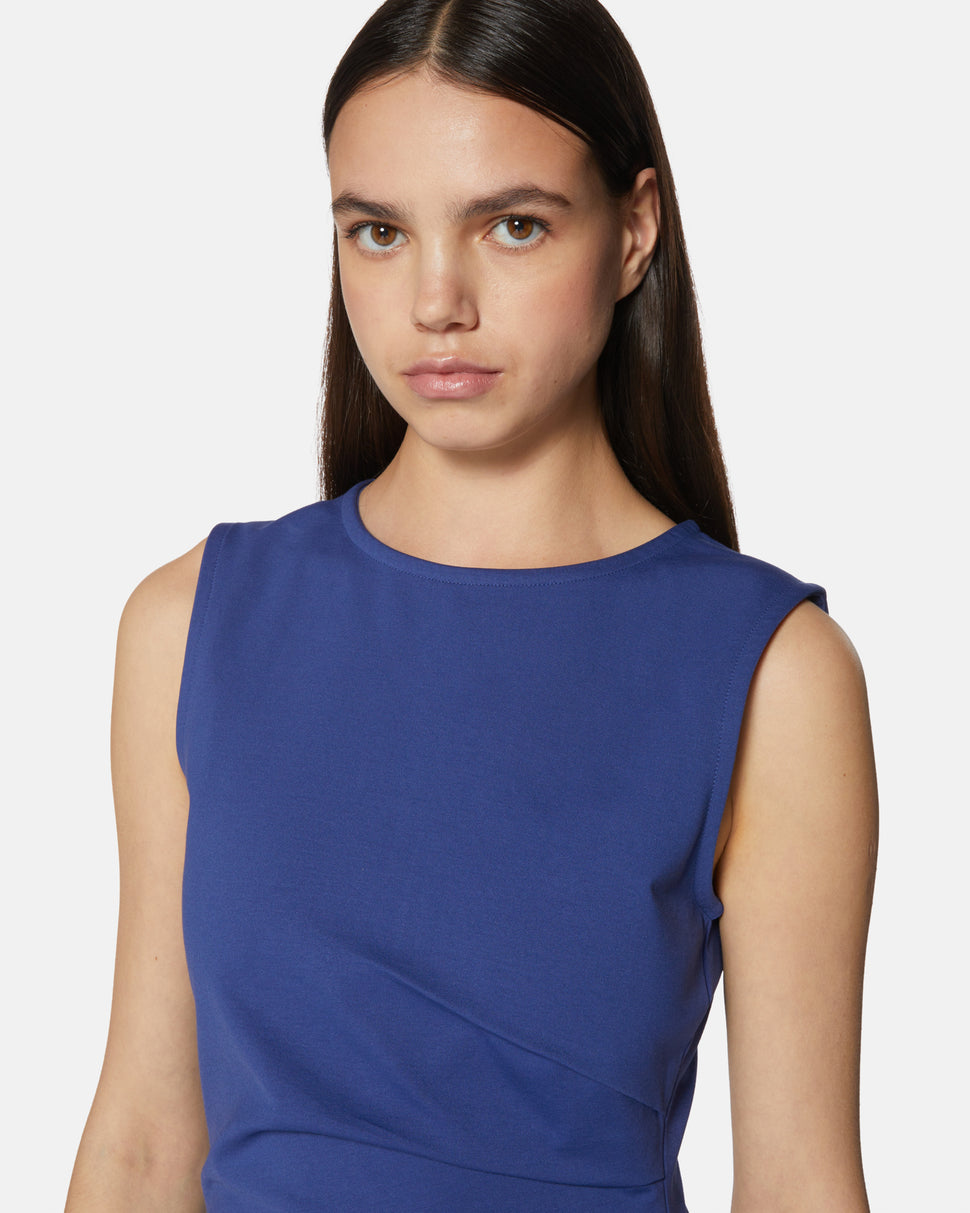 Realizzato in tessuto elasticizzato, questo abito combina comfort e stile per un look elegante e moderno. Il design smanicato e il drappeggio laterale donano movimento e valorizzano la silhouette, rendendolo un capo versatile e femminile.