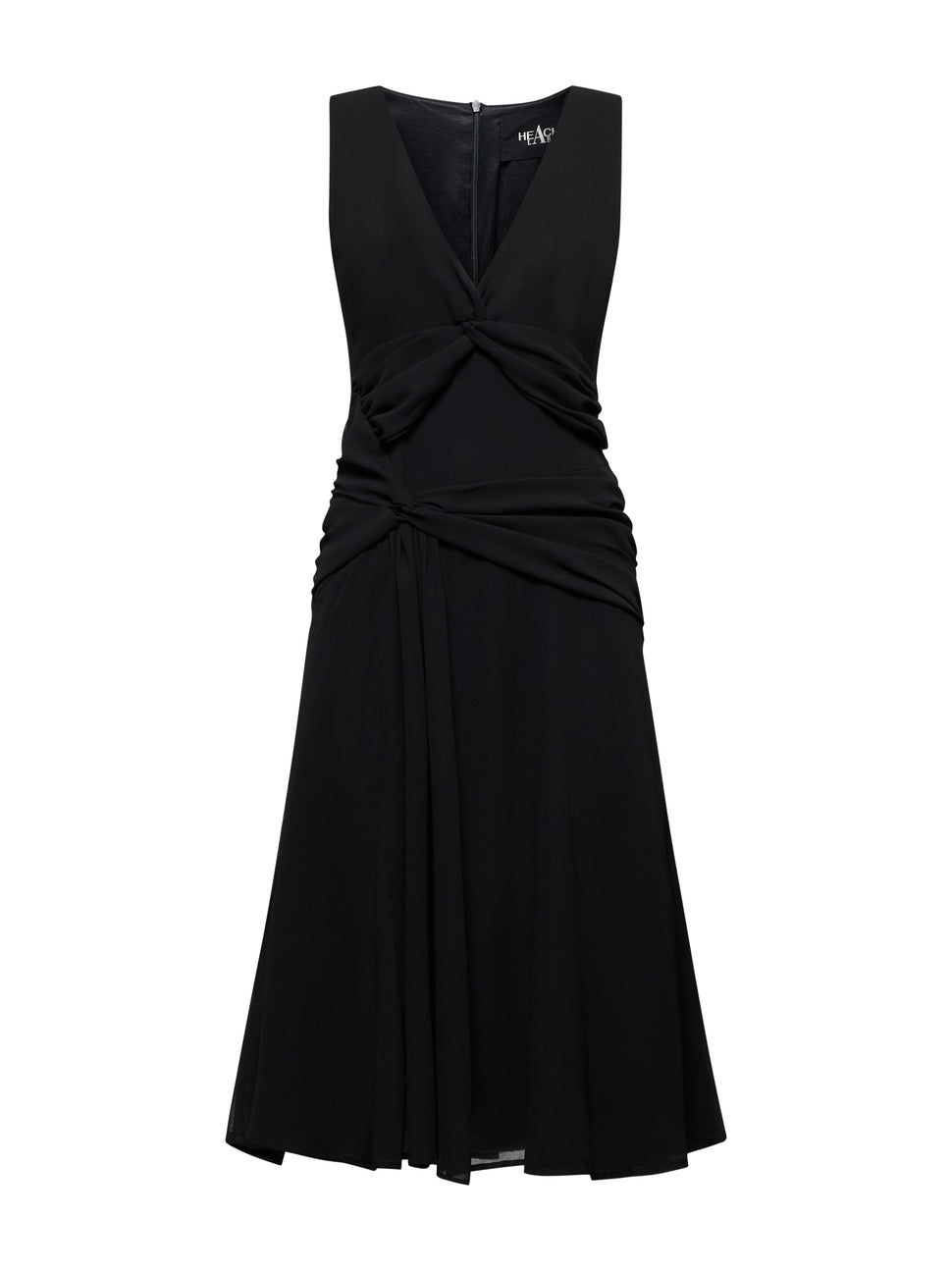 Abito drappeggiato dal design elegante e sofisticato, perfetto per esaltare la silhouette con un effetto fluido e avvolgente. Profondo scollo a V che valorizza il décolleté con femminilità e raffinatezza. Drappeggi frontali e laterali che aggiungono movimento e struttura, creando un effetto morbido e armonioso. Lunghezza al ginocchio ideale per un look versatile, adatto sia a occasioni formali che a eventi serali. Chiusura con zip posteriore nascosta per un fit impeccabile e una linea pulita.