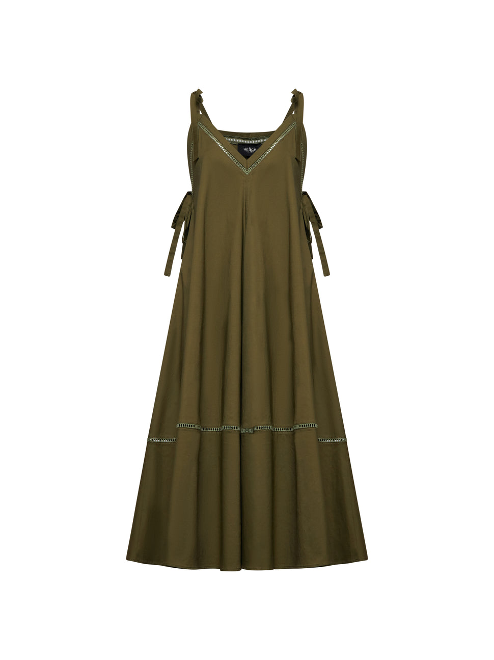 Un abito lungo e leggero, caratterizzato da un design ampio con dettagli di finitura a contrasto e spalline regolabili. Perfetto per le giornate più calde, offre comfort e stile in ogni occasione.