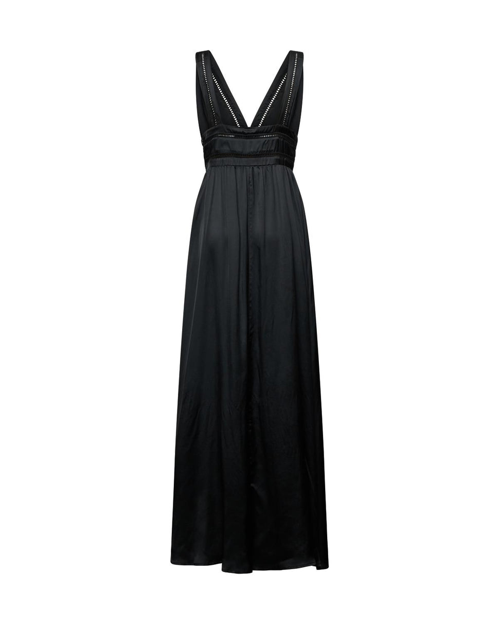 Un abito elegante e seducente, caratterizzato da uno scollo a V e da dettagli scintillanti che esaltano la sua raffinatezza. Il taglio lungo e la leggera apertura laterale lo rendono perfetto per eventi speciali o serate sofisticate.