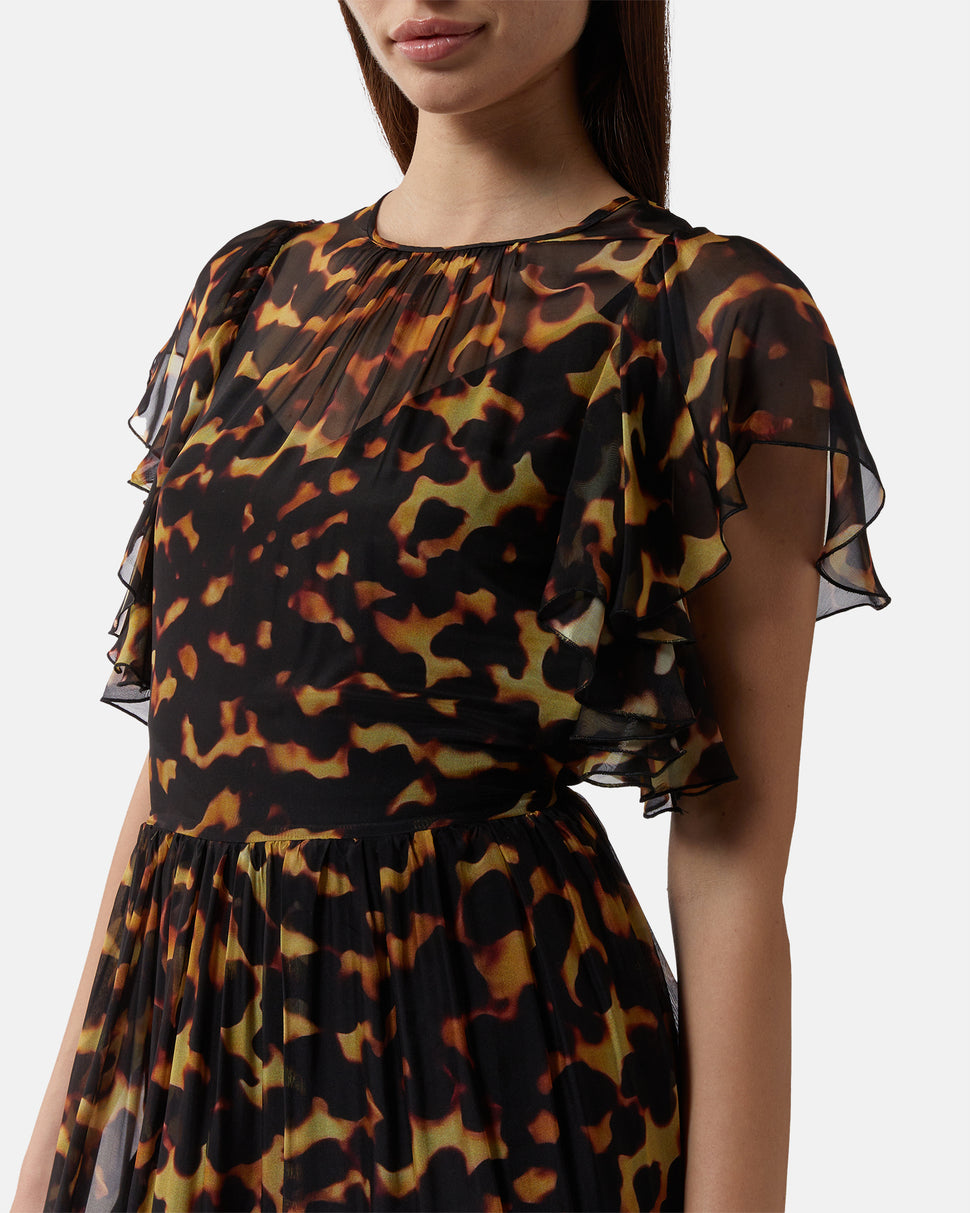 - Tulle leggero con stampa floreale: look romantico e raffinato.