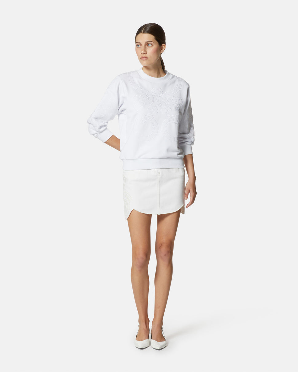 Minigonna con ricamo tono su tono