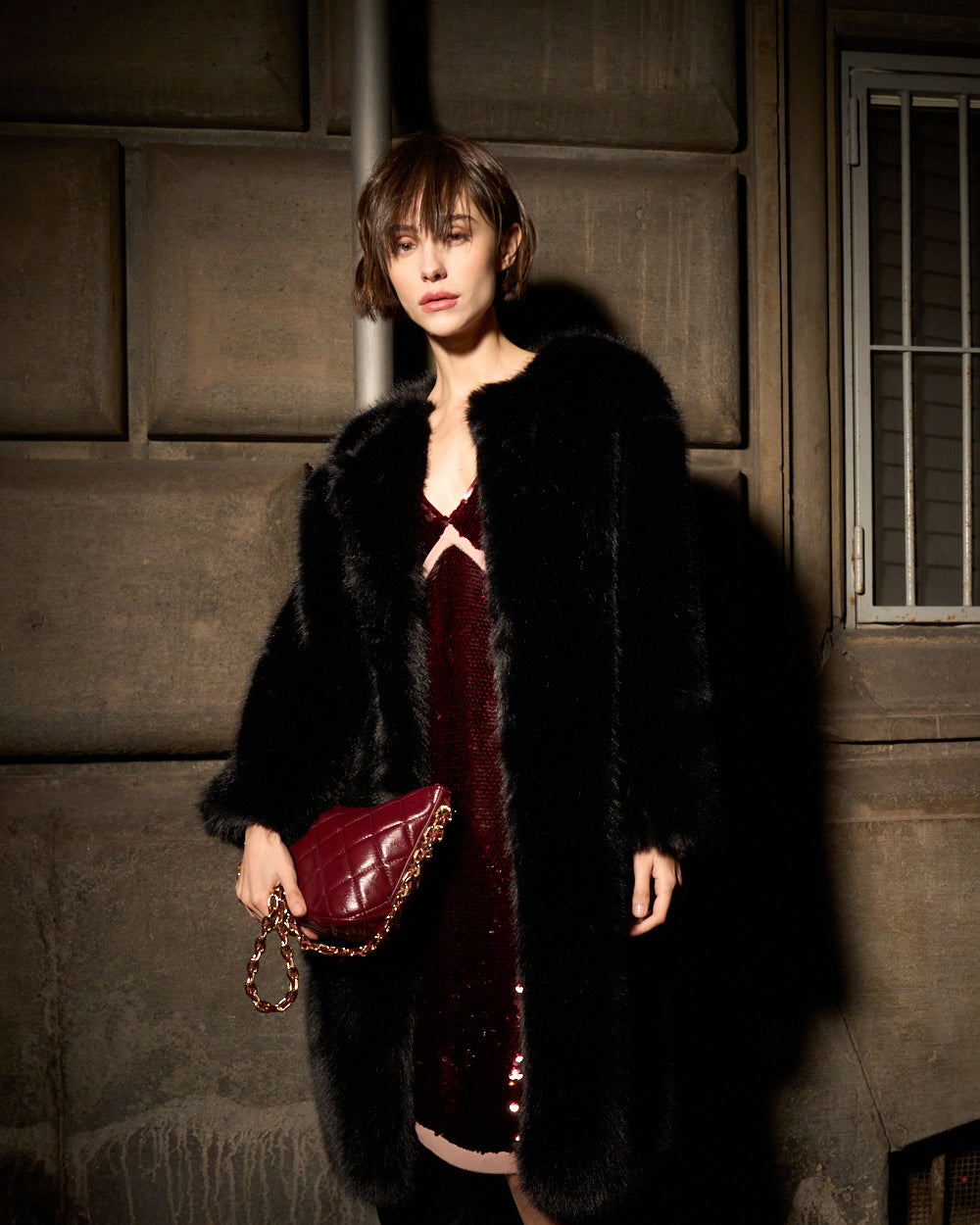 Un Natale che unisce eleganza da festa, scintillio urbano e femminilità contemporanea.