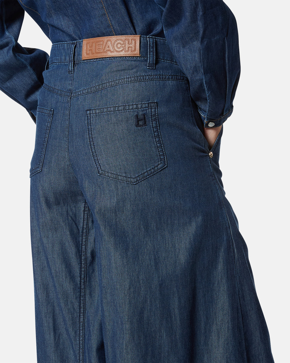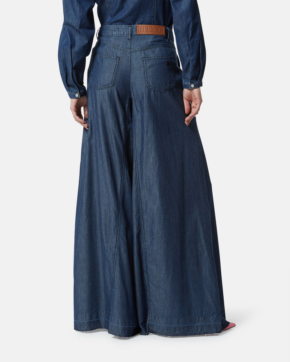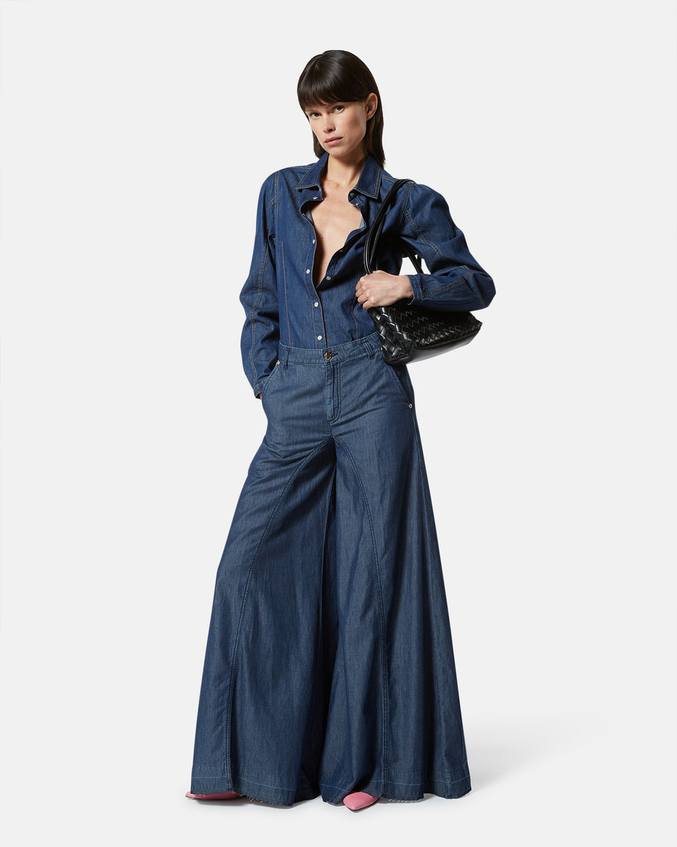 Un capo audace e di carattere che combina la comodità del denim con un design d'impatto. La silhouette a palazzo, ampia e fluida, dona un movimento elegante, mentre i dettagli sartoriali esaltano lo stile unico di questo pantalone.