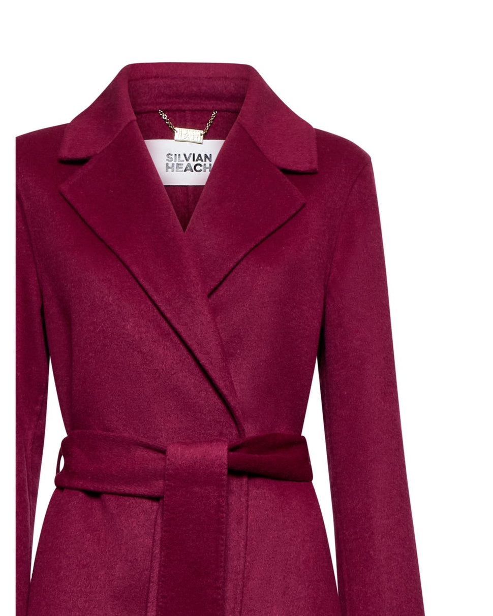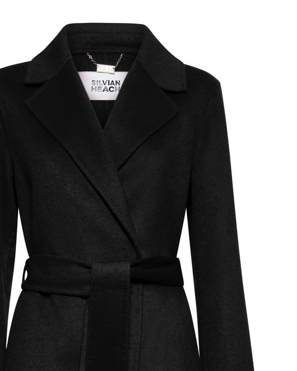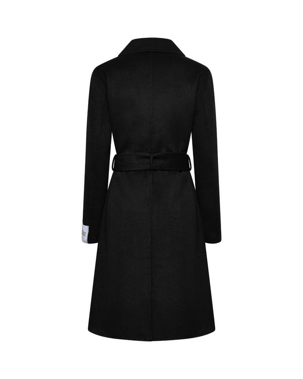 Linee pulite, fit definito. Questo cappotto avvolgente si distingue per il collo a lancia e la cintura coordinata che sottolinea il punto vita con eleganza.