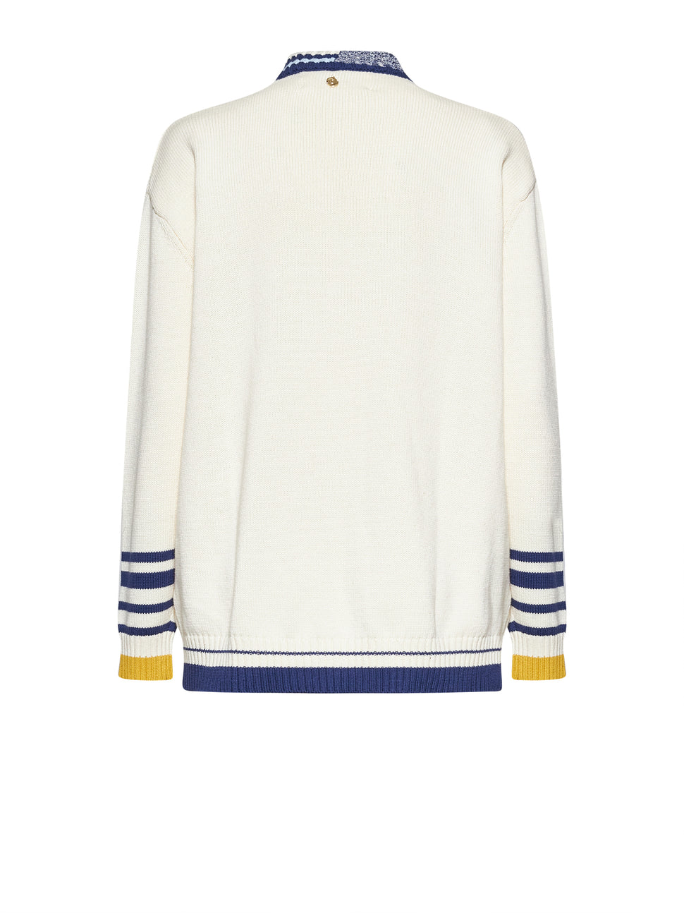 Questo cardigan con scollo a v esprime un’eleganza contemporanea dal carattere distintivo, arricchita da dettagli grafici che definiscono il design con equilibrio e personalità. La costruzione curata e l’attenzione ai particolari rendono il capo ideale per completare look sofisticati in chiave luxury.