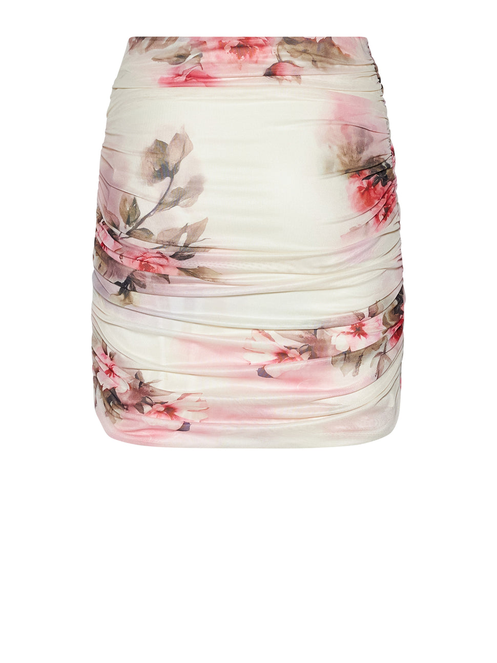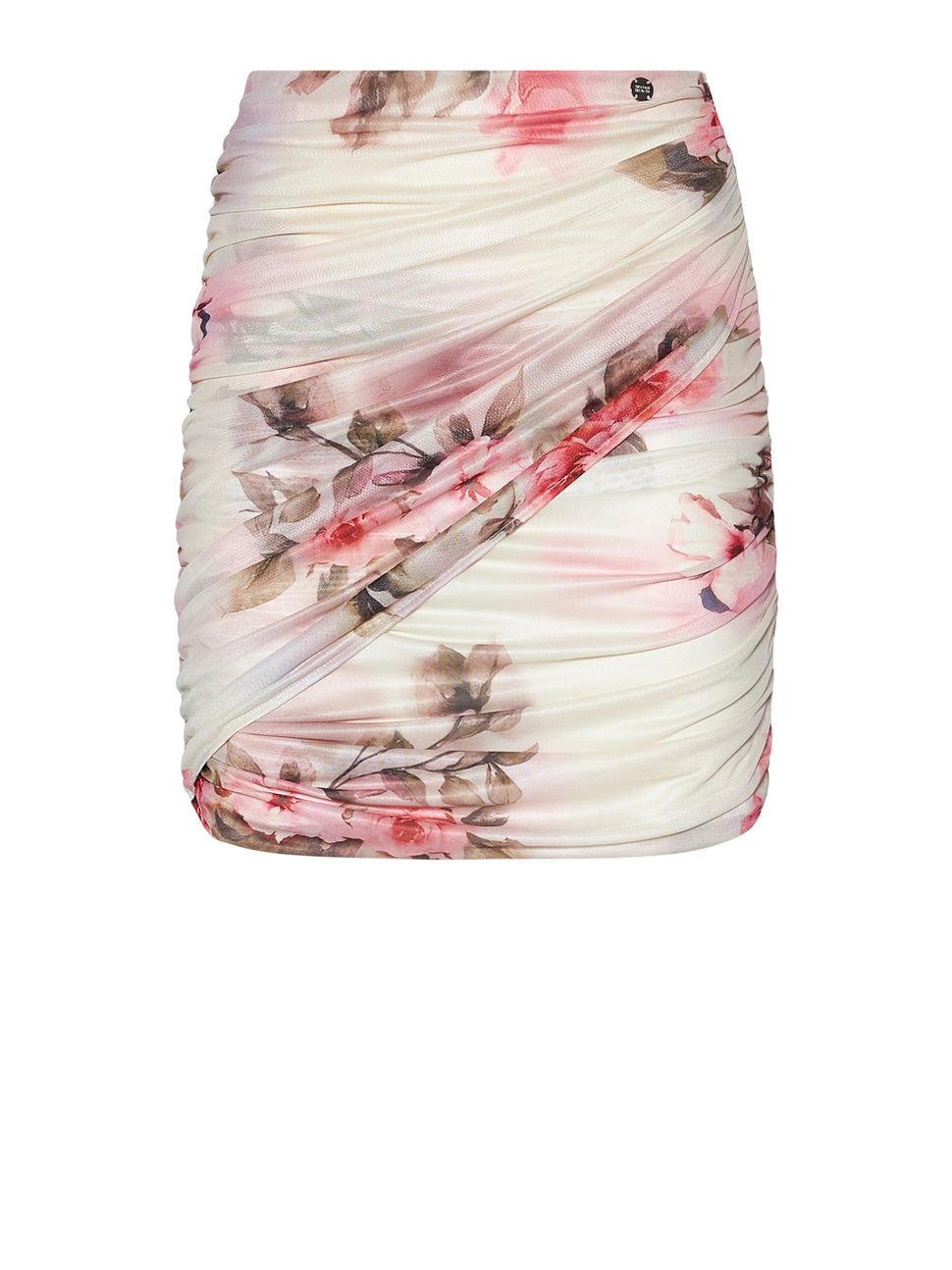 Gonna corta con drappeggio e stampa floreale