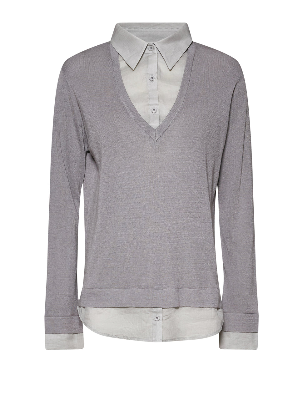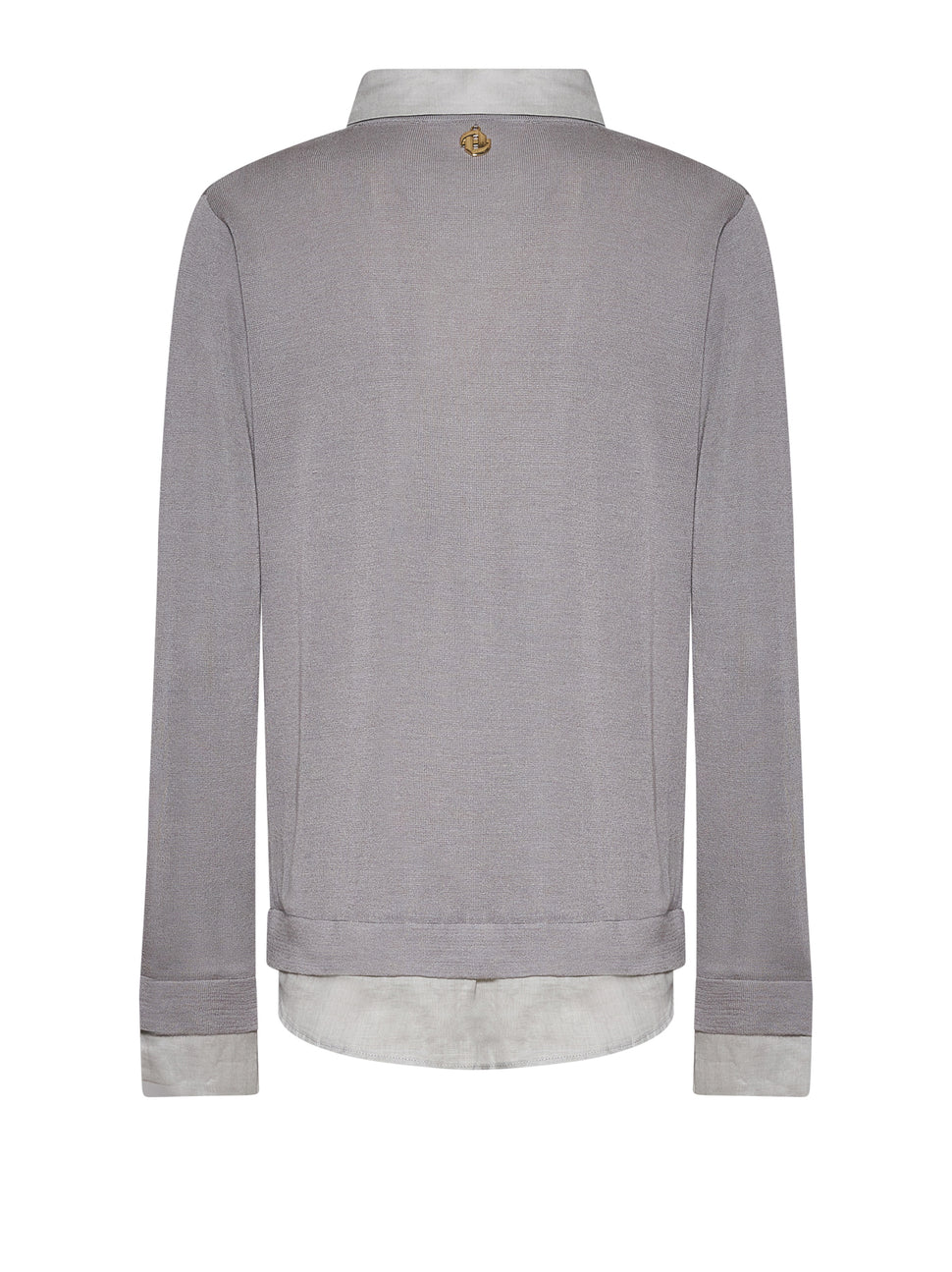 Questa maglia interpreta il concetto di stratificazione con un approccio elegante e contemporaneo, creando un raffinato dialogo tra elementi sovrapposti e linee pulite. Il design equilibrato e curato nei dettagli conferisce al capo un carattere distintivo, ideale per uno stile sofisticato e moderno in ottica luxury.