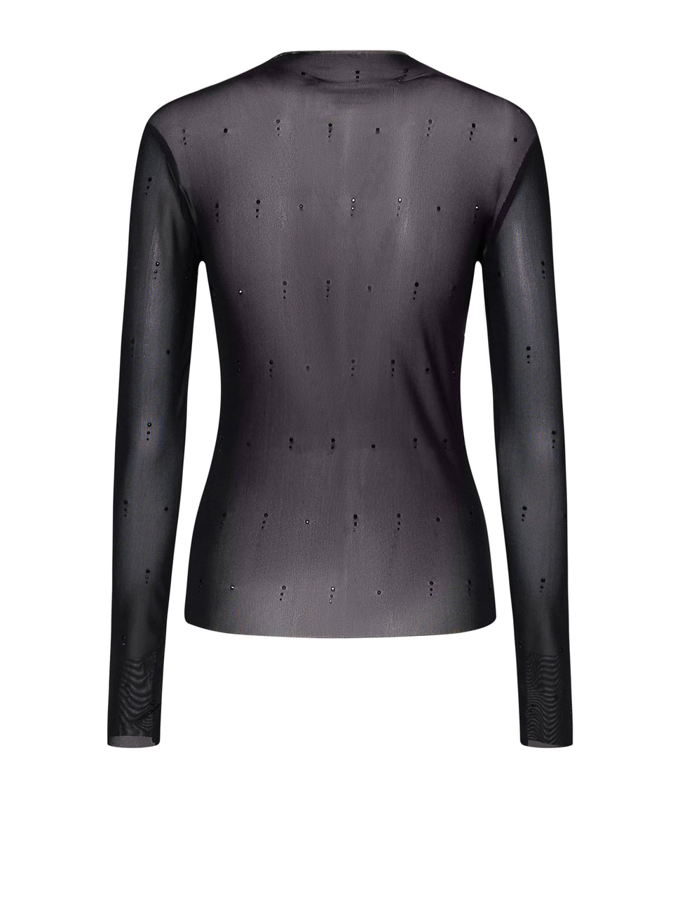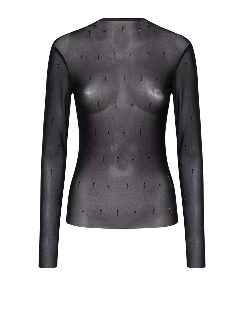 Un capo dal fascino sensuale e contemporaneo, pensato per esprimere eleganza attraverso un’estetica audace e raffinata. L’effetto vedo-non-vedo, arricchito da micro dettagli decorativi, crea un gioco visivo di grande impatto, valorizzando il design con leggerezza e profondità. Una proposta luxury destinata a look serali e interpretazioni di stile decise ma sofisticate.