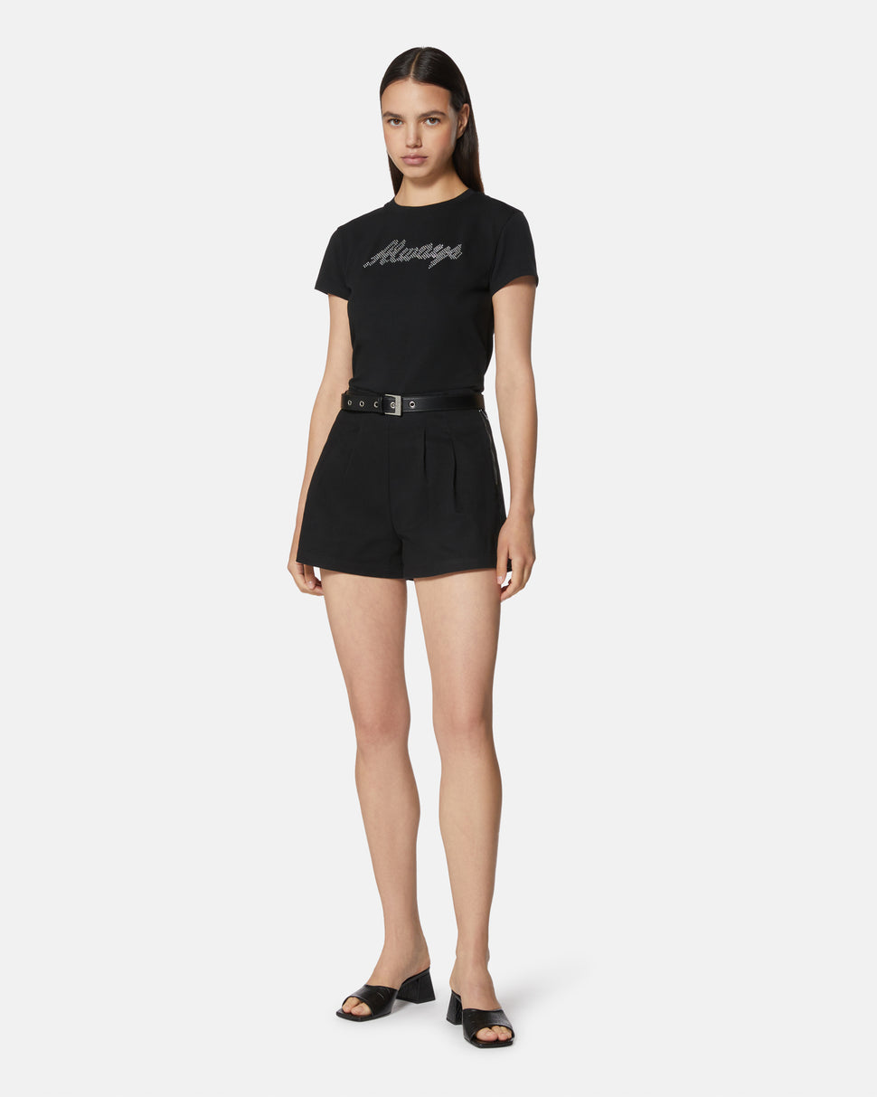 Un capo casual ma con un tocco di classe grazie alla scritta "Always" ricamata con strass. Perfetta per aggiungere un tocco di personalità e stile al tuo look quotidiano, senza rinunciare al comfort.