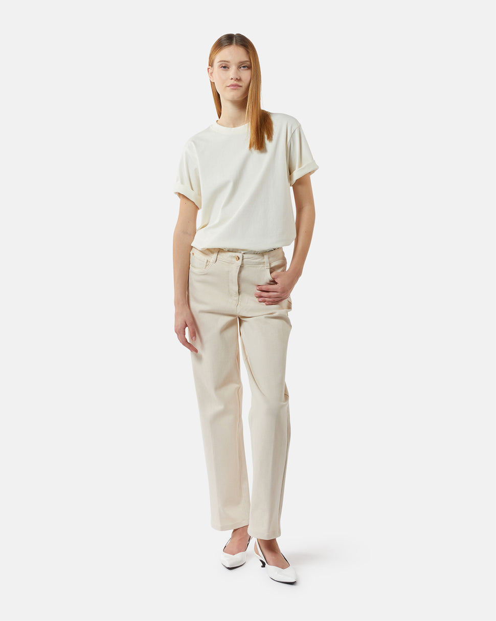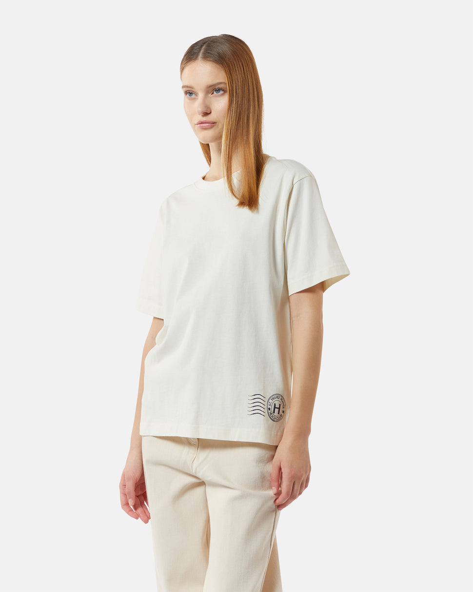 Una t-shirt semplice ed elegante, con un dettaglio di stampa laterale che aggiunge un tocco distintivo e moderno.