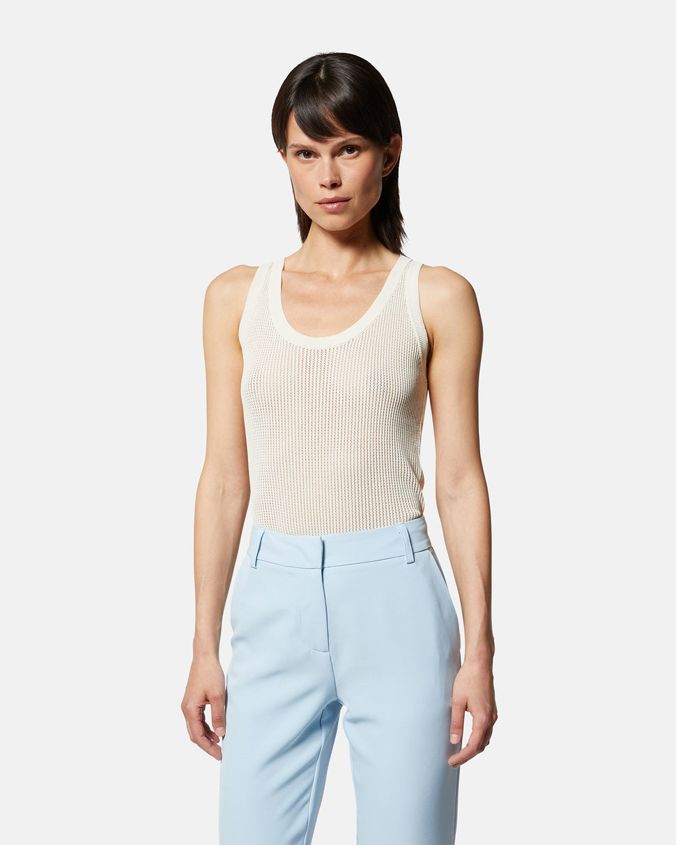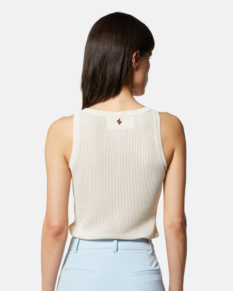 Versatile ed essenziale, questa canottiera in maglia leggera è perfetta per ogni stagione. Il design minimalista la rende ideale da indossare sia da sola che sotto giacche e cardigan. Realizzata in tessuto morbido e traspirante, garantisce comfort e stile in ogni occasione.