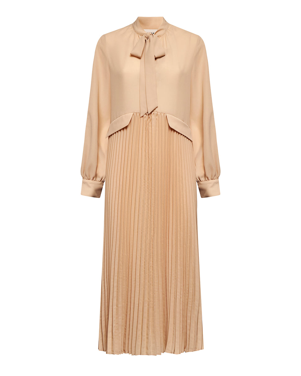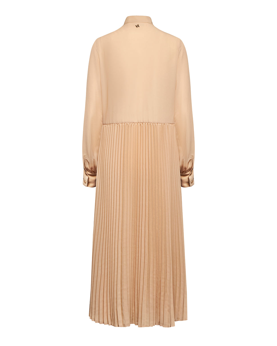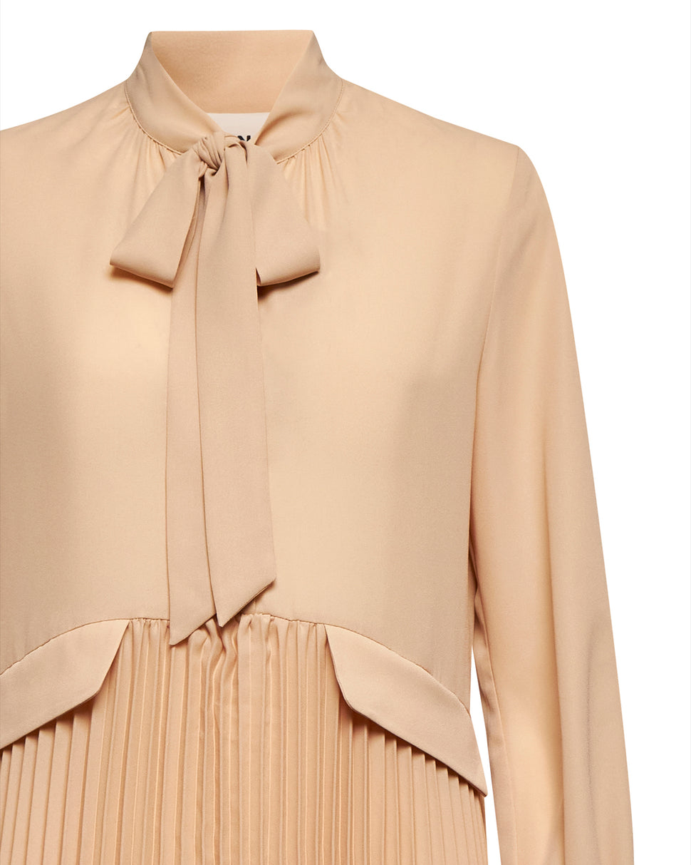 A fluid cut and sophisticated silhouette define this shirtdress with a pleated skirt and a decorative knot at the waist. Wear with sandals or boots for a seasonal look.