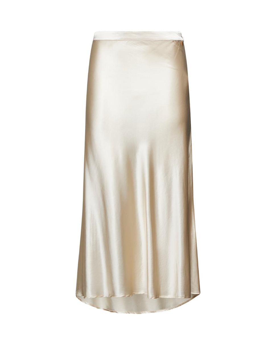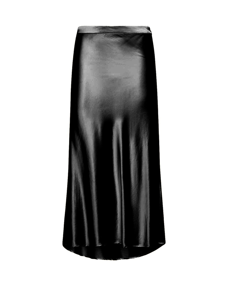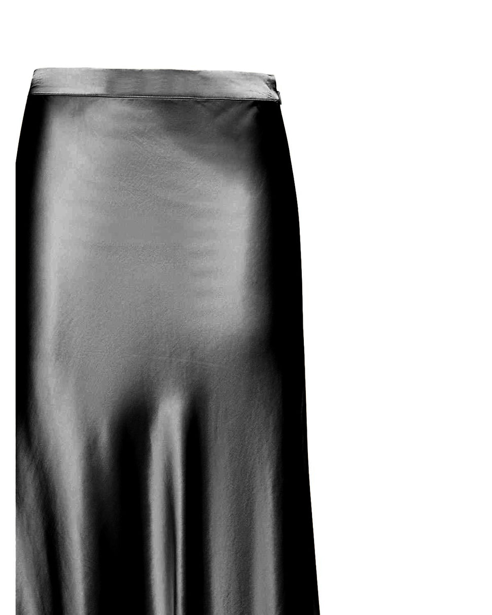 A-line midi skirt with a satin finish. A simple yet sophisticated piece, perfect for both casual and elegant looks.
