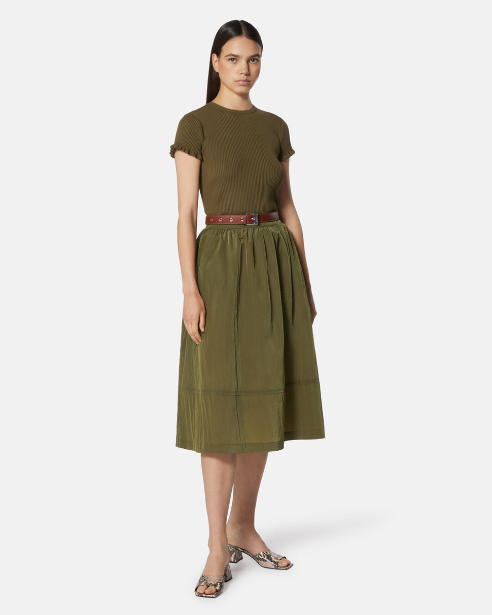 An elegant long skirt, perfect for summer days. The fluid design and the contrasting belt add a touch of refinement, creating a versatile look that adapts to several occasions.
