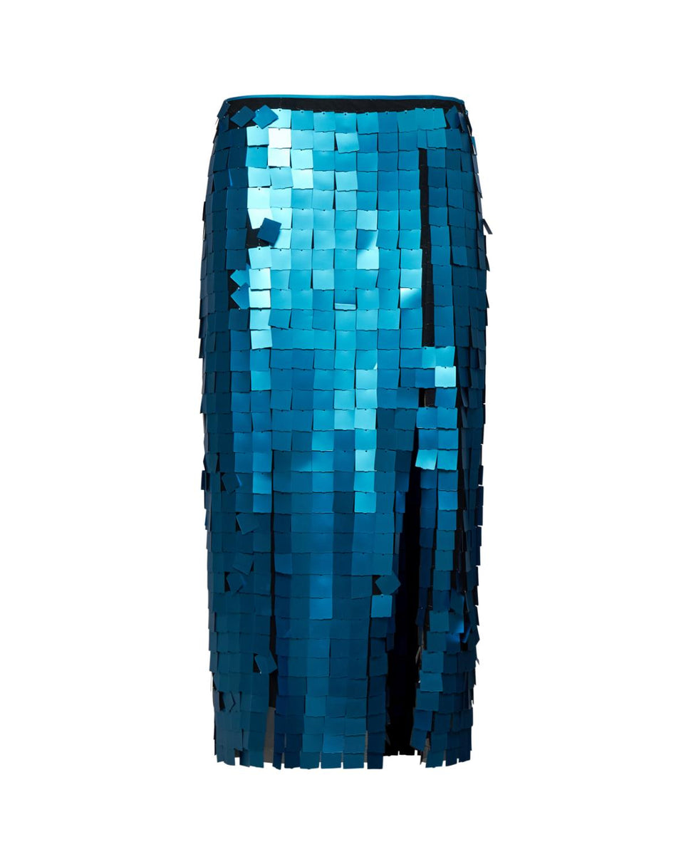 A garment with a bold design, this MIDI skirt is entirely decorated with three -dimensional sequins that create a game of light and movement. Perfect for glamorous evenings and special occasions.