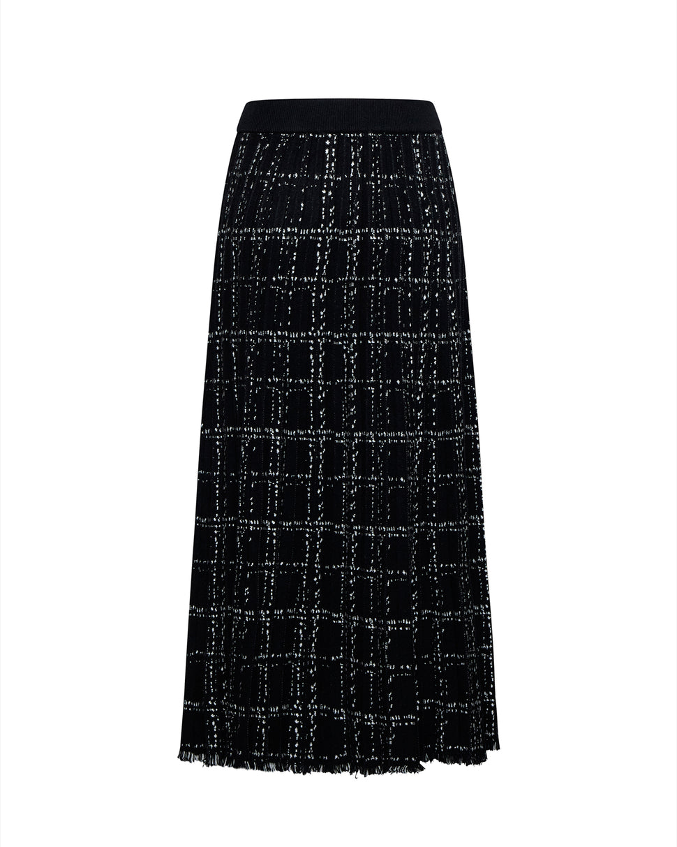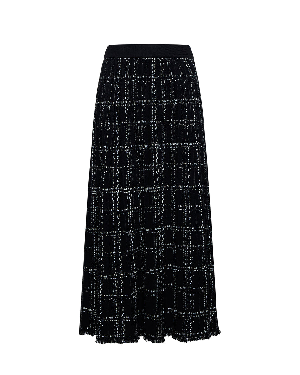 This A-line skirt features a contrasting check pattern. The loose fit enhances movement.