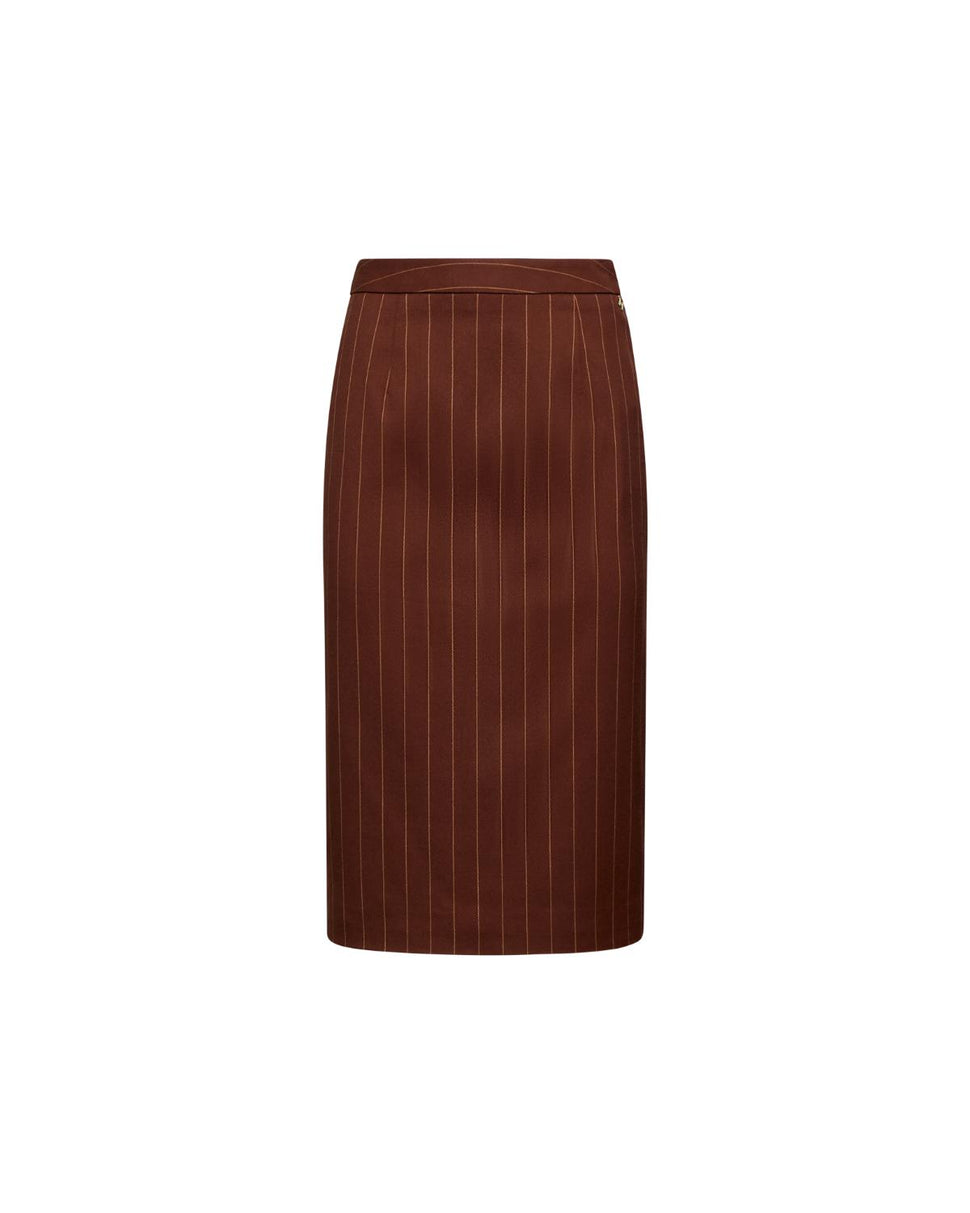 Fitted skirt decorated with thin vertical stripes. A classic yet distinctive piece, ideal even for formal occasions.