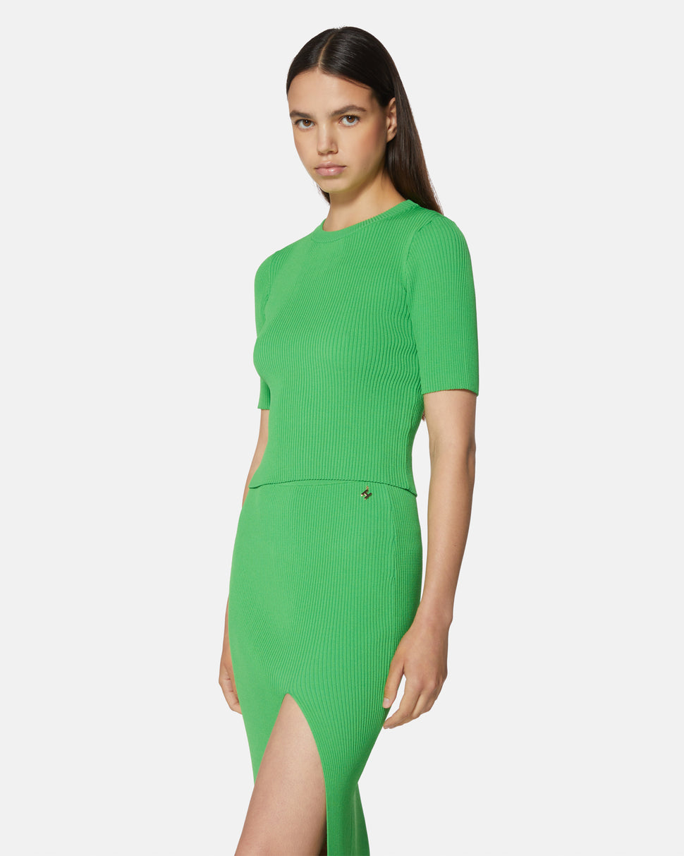 Modern and bold, this knitted sheath dress is perfect for those who love comfort without sacrificing style. The adherent cut and the side slit give a touch of femininity.