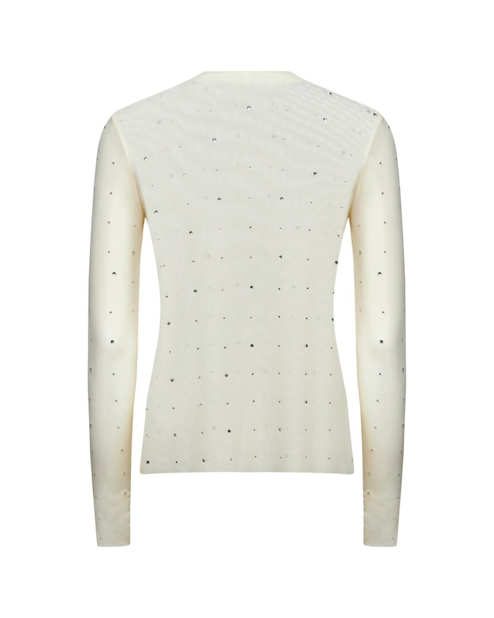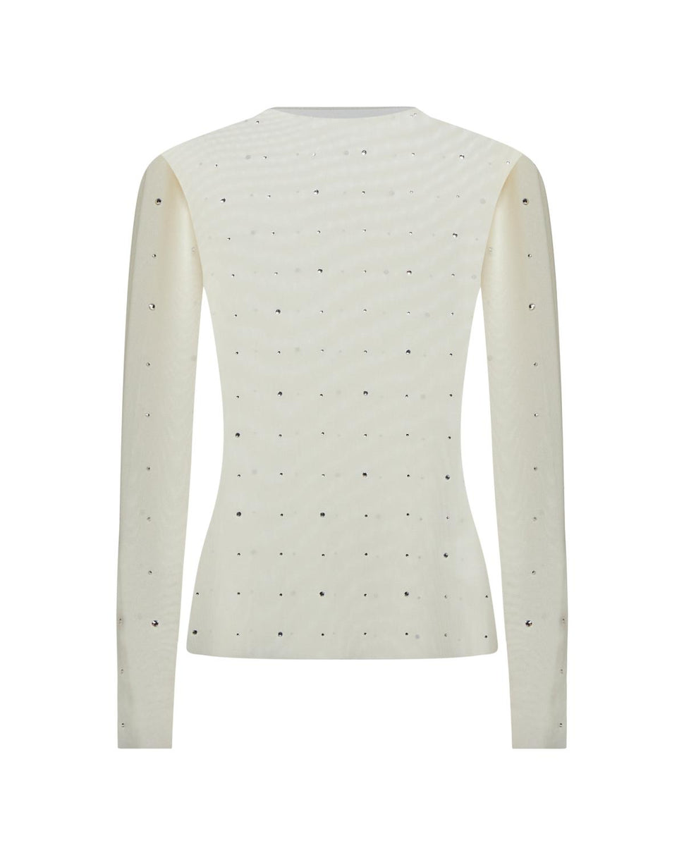 A long-sleeved sweater embellished with small decorative elements on the front. A piece that combines simplicity with bright accents, perfect for enhancing minimal outfits or adding a touch of sparkle to layering.