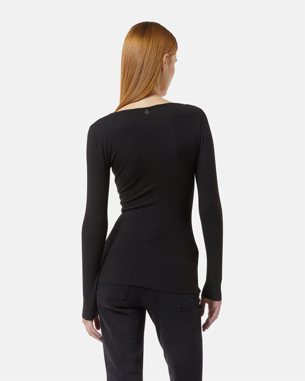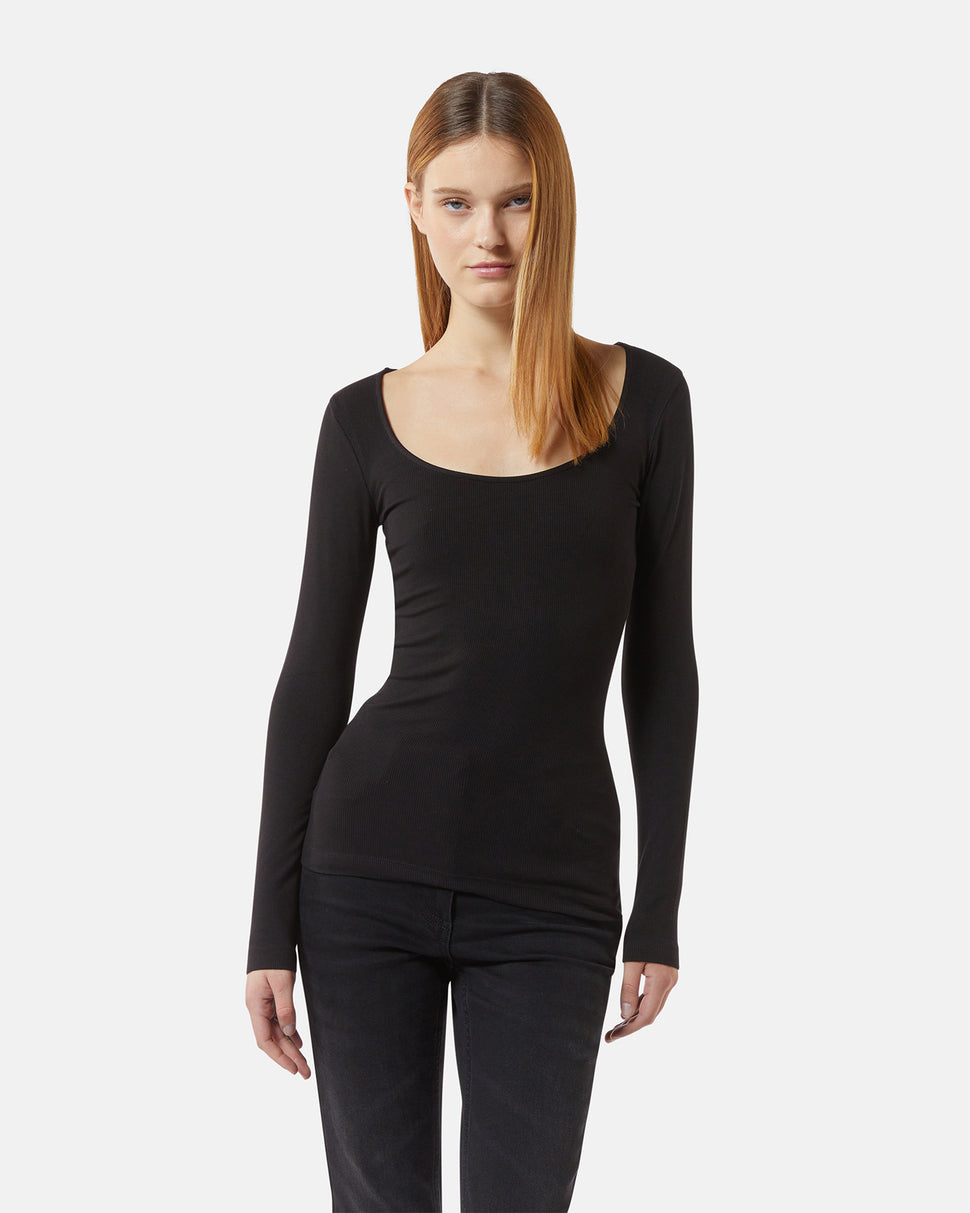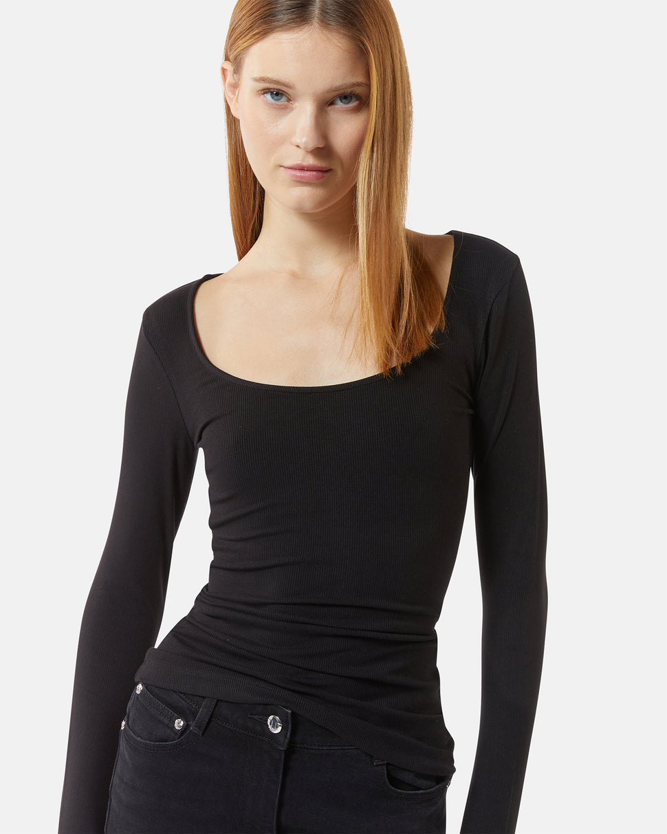 A basic but sophisticated top, with a square neckline that gives a touch of modernity. The adherent fit and elastic fabric make it perfect as a base for casual or elegant looks.