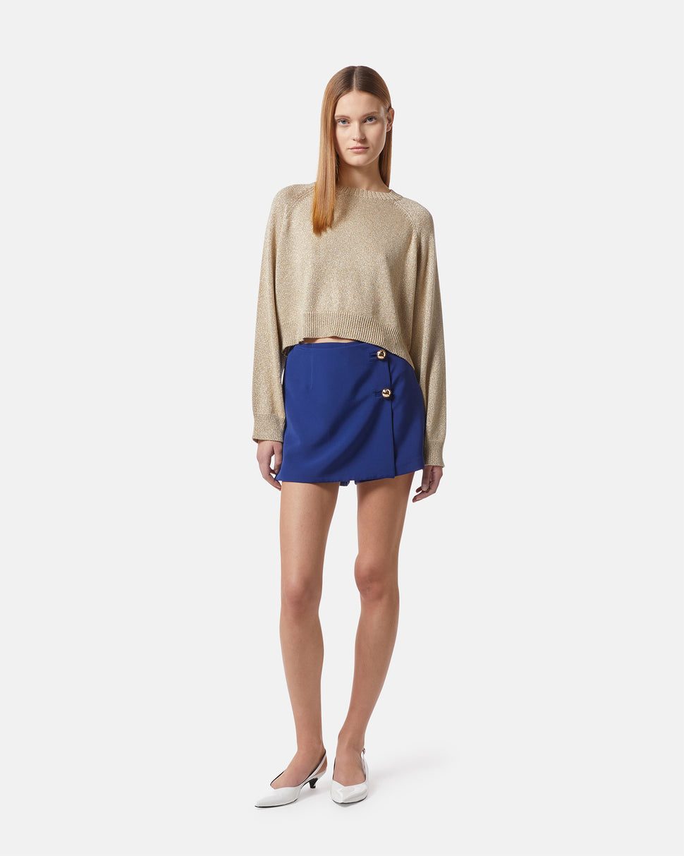 Versatile and essential, this long -sleeved cropped shirt is perfect for a casual but refined look. The soft and light fabric makes it ideal for each season, while the short cut adds a contemporary touch. To be combined with high -waisted trousers or skirts for a balanced and fashionable outfit.