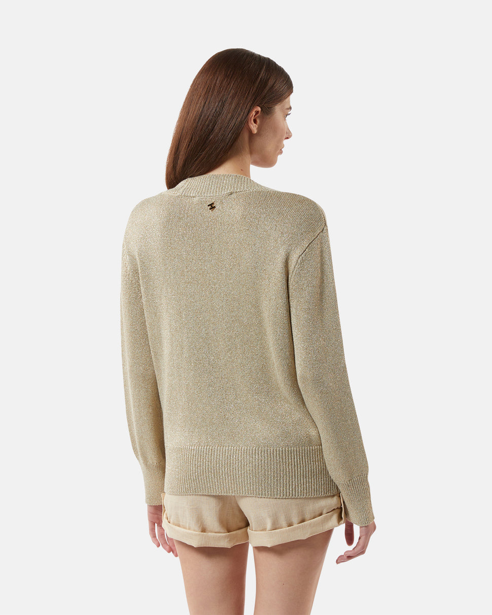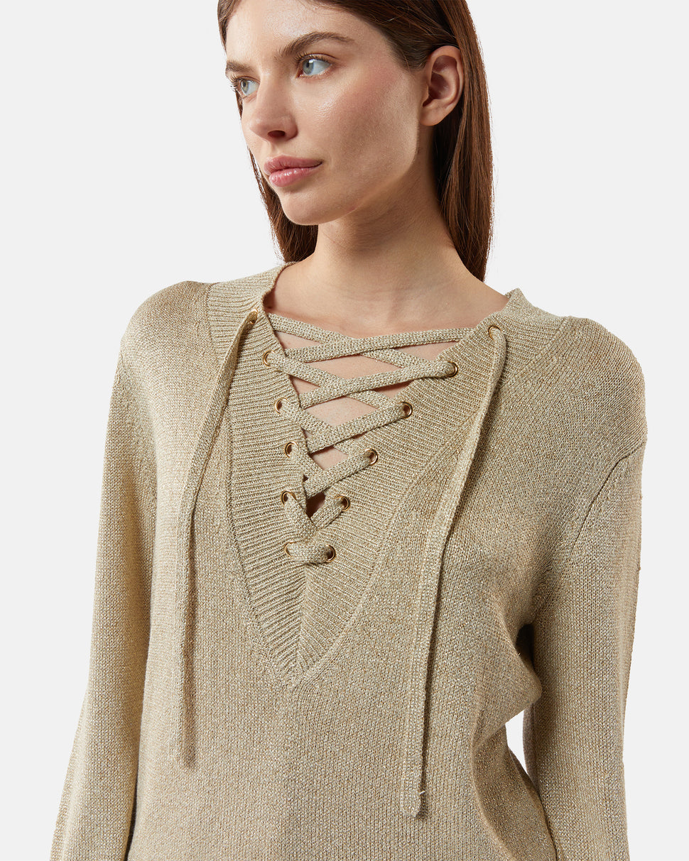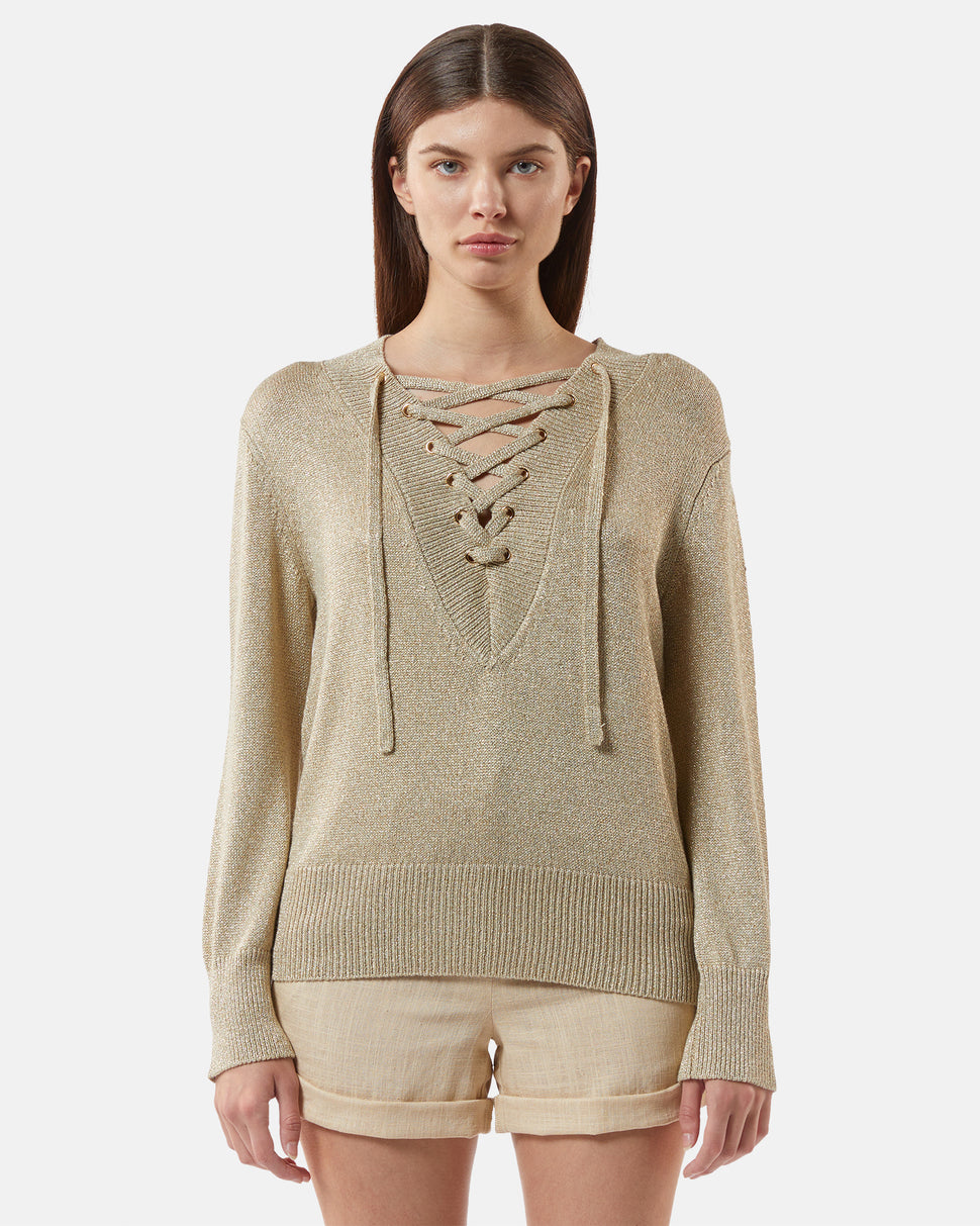 Lurex shirt sweater with intertwined V neckline