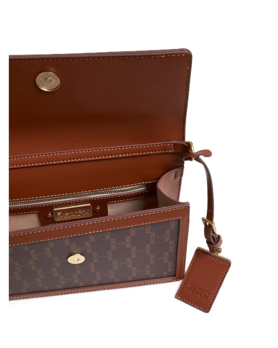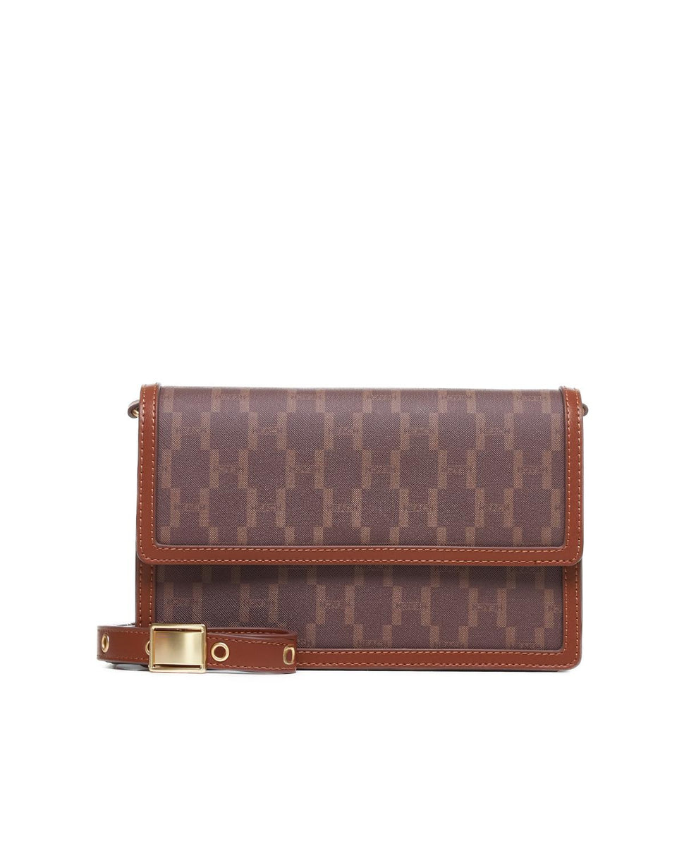 Compatta e di carattere, questa mini bag con patta rigida si distingue per la silhouette squadrata e il pattern monogramma. Il dettaglio metallico frontale aggiunge un accento deciso.