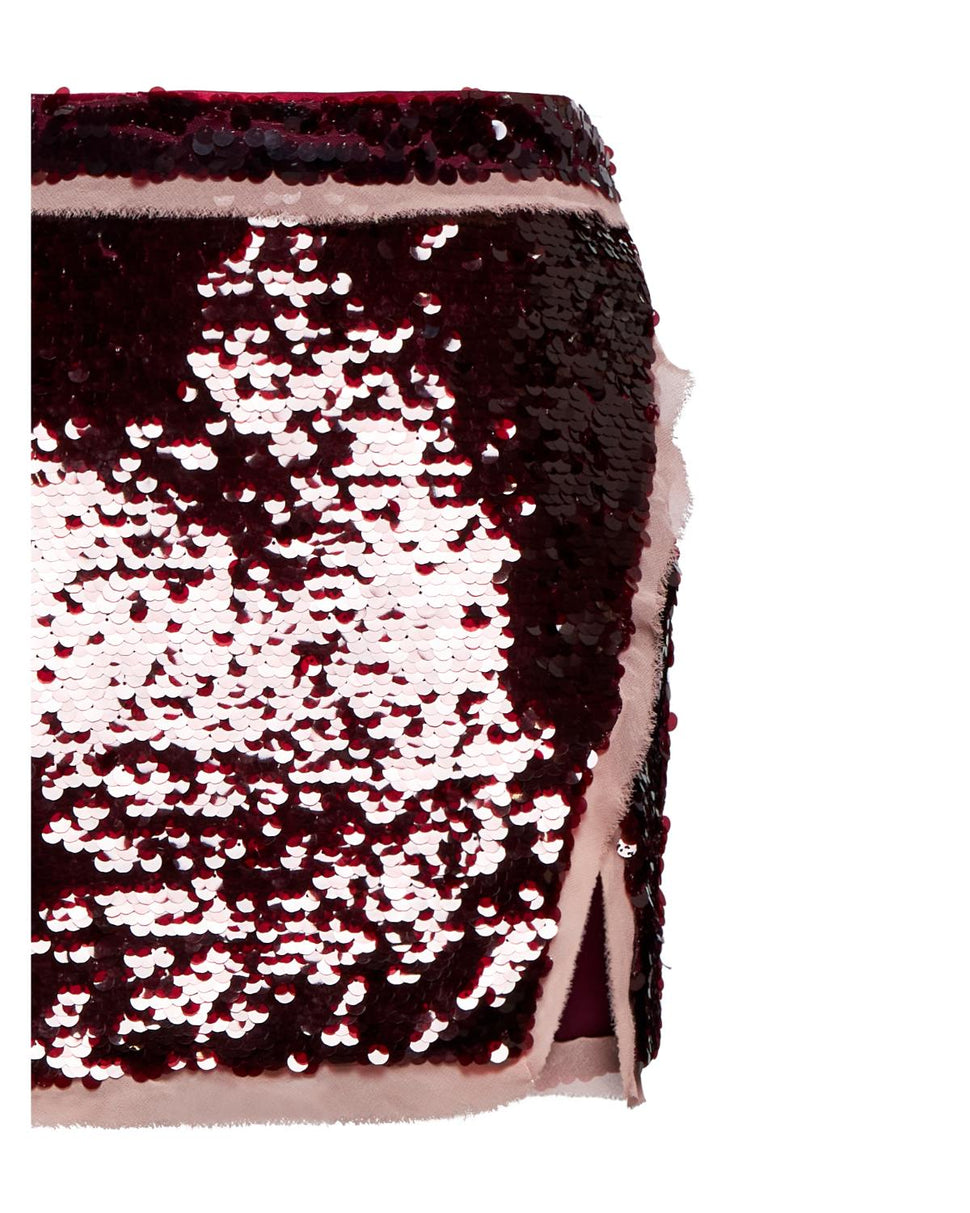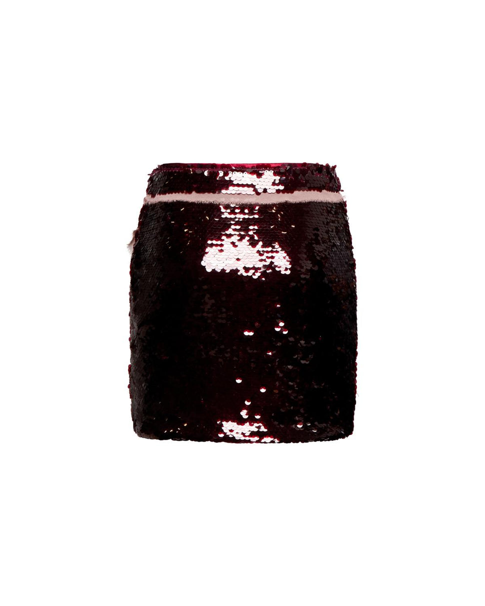 A fitted skirt with all-over sequins and a side detail that recalls the aesthetic of stage leotards.