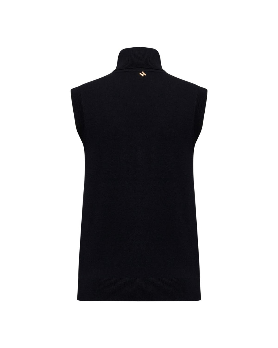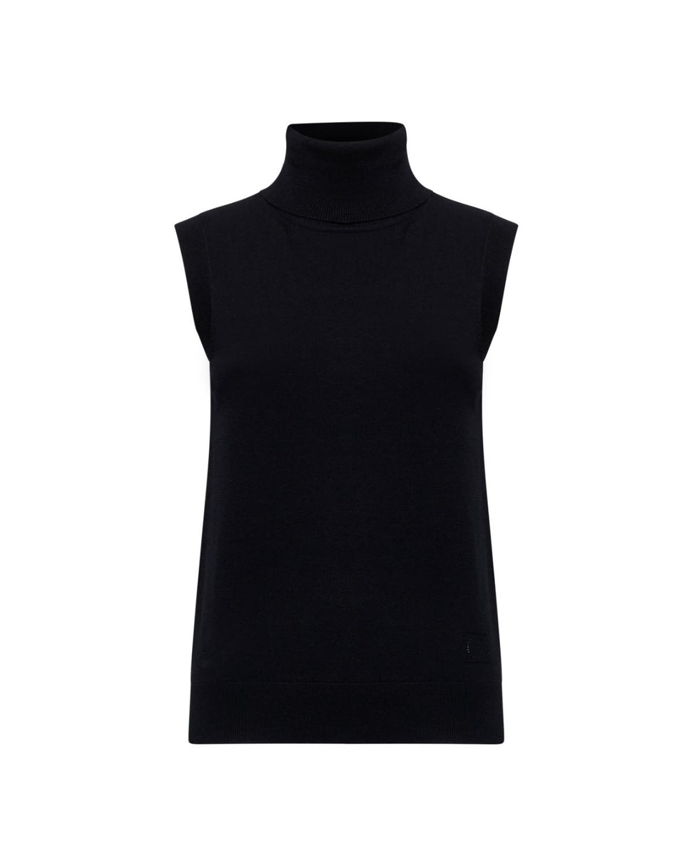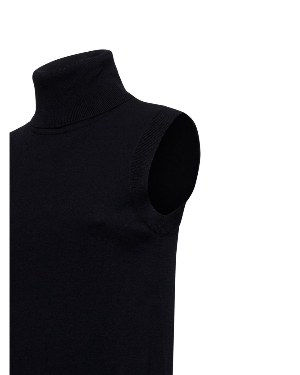 A sleeveless, turtleneck sweater with a clean cut. Designed for layering or worn alone in minimalist looks.