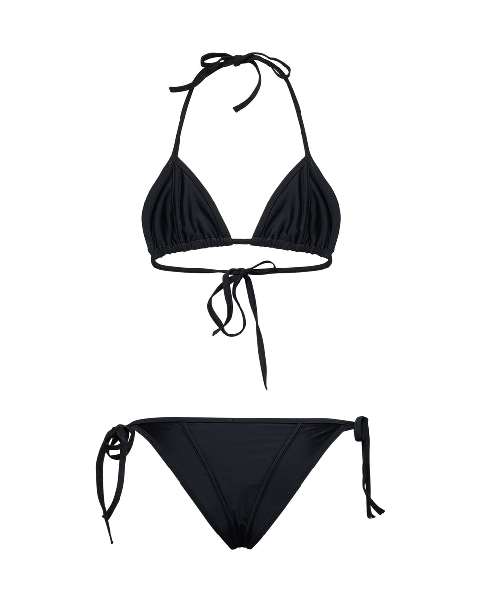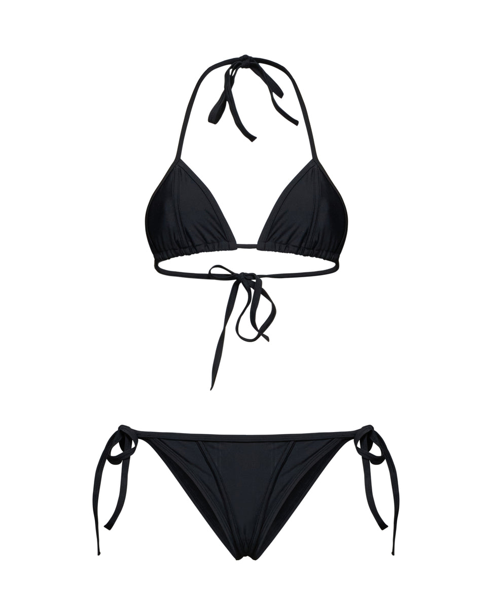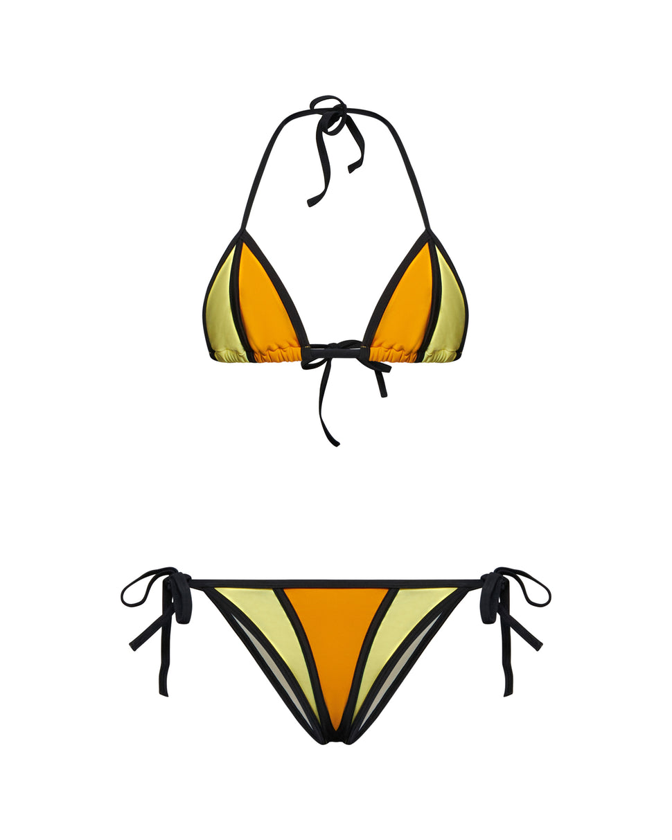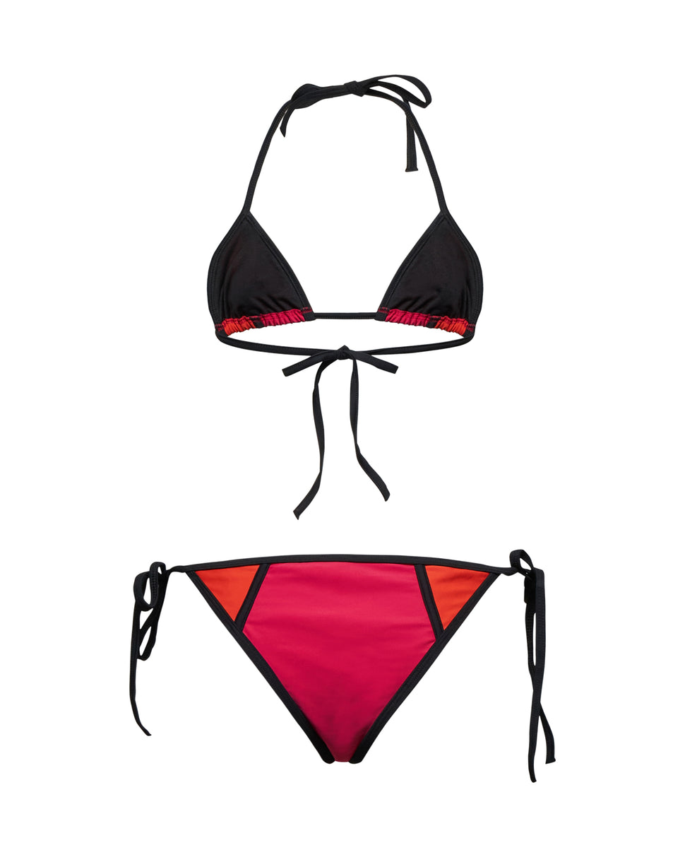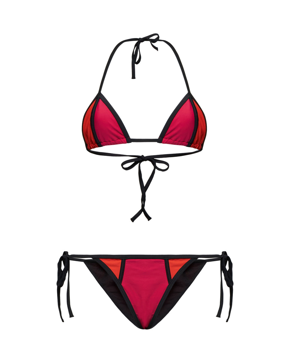 The triangle bikini that never goes out of fashion, revisited with a mix of rose and coral and black details for a decisive touch. Light, comfortable and adjustable, it is the perfect ally for a summer of style and freedom on the beach.