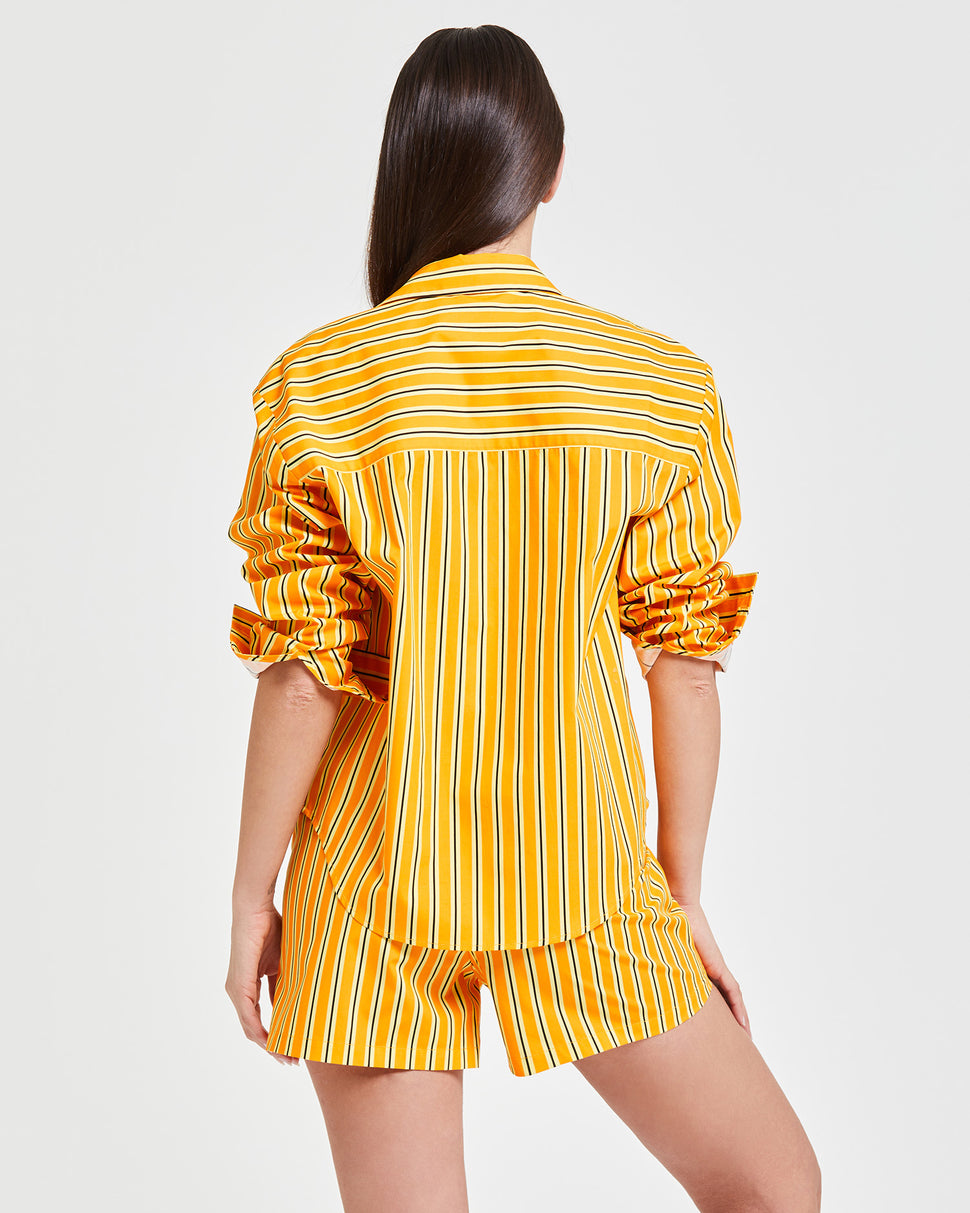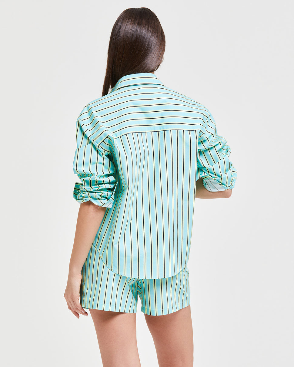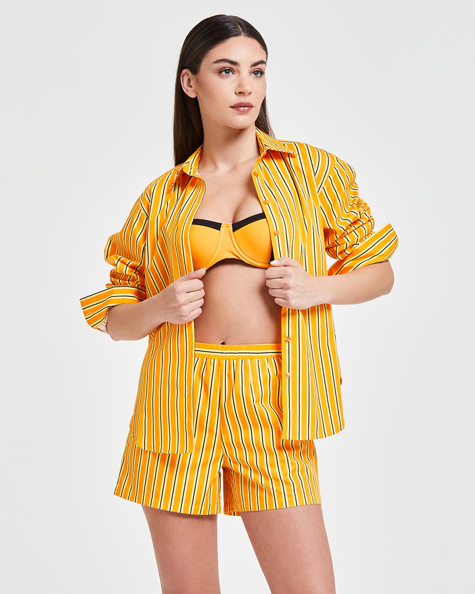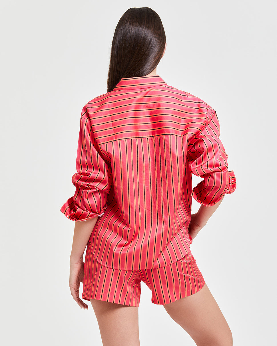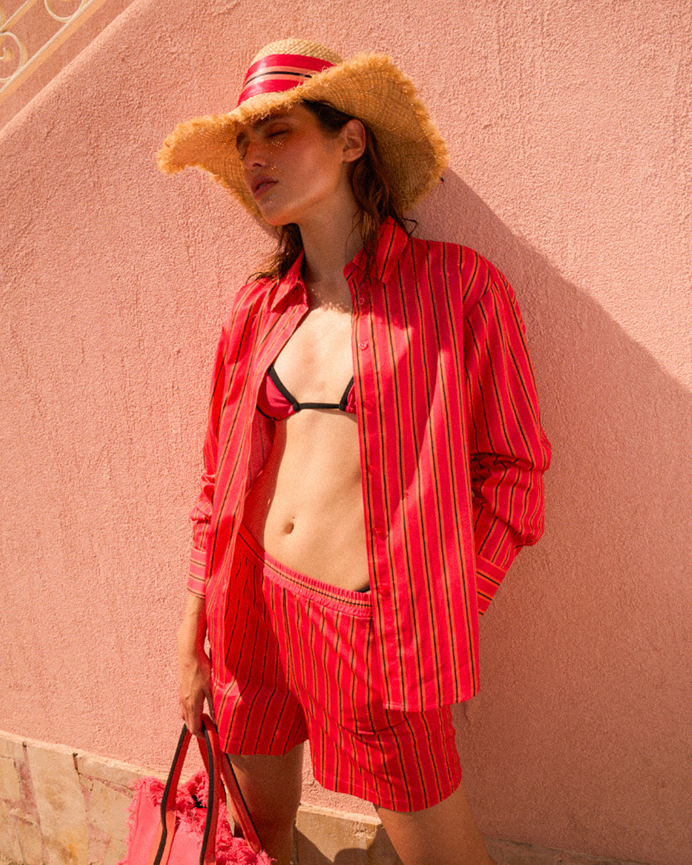 Colored, light and ultra versatile, this oversized vertical striped shirt gives a bold and refined touch to beach or city look. Ideal as a cover -up or as a casual chic garment for summer evenings.