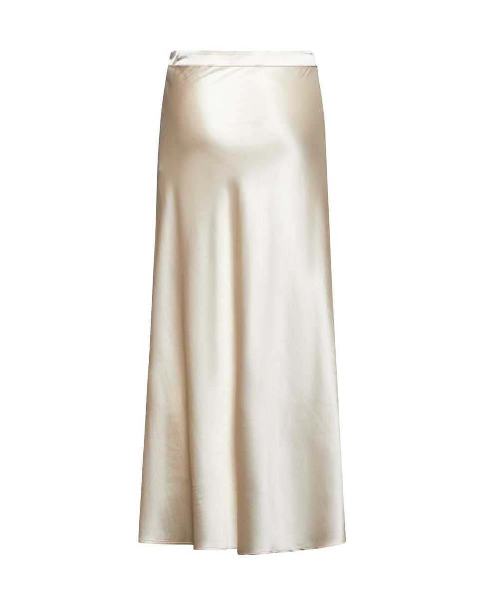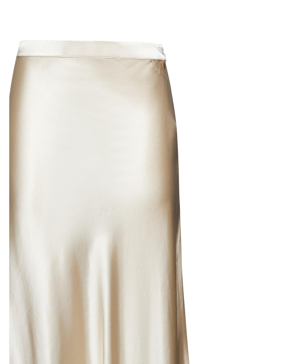 A-line midi skirt with a satin finish. A simple yet sophisticated piece, perfect for both casual and elegant looks.