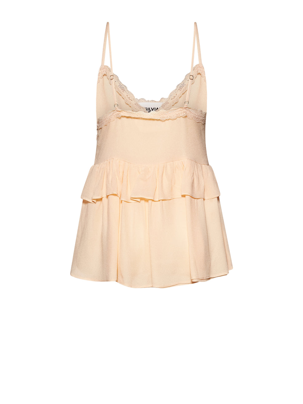 Top dal linguaggio femminile e sofisticato, caratterizzato da una costruzione stratificata che dona movimento e leggerezza all’insieme. Le spalline sottili e il profilo delicatamente rifinito valorizzano un’estetica elegante e contemporanea, rendendo il capo una proposta luxury pensata per un guardaroba ricercato e armonioso.
